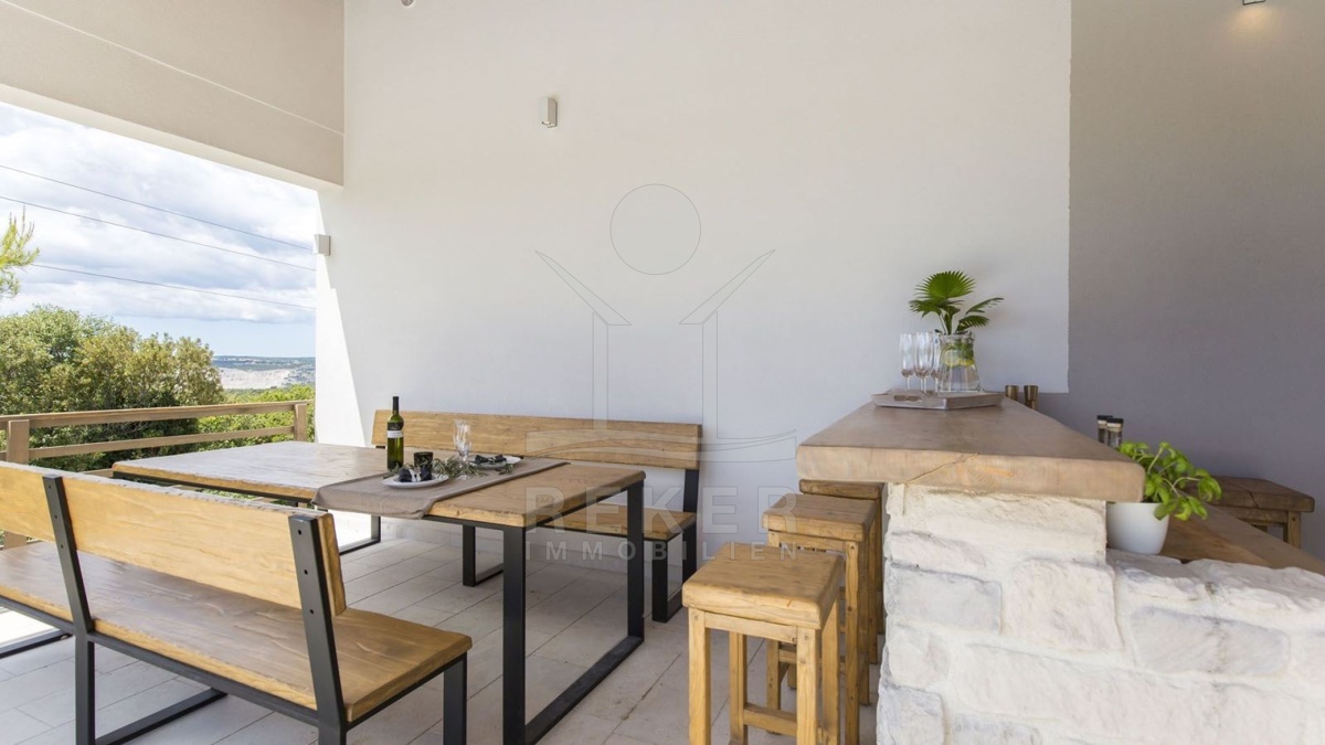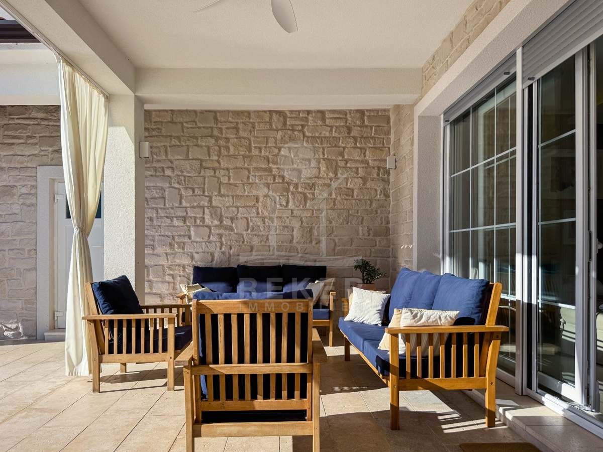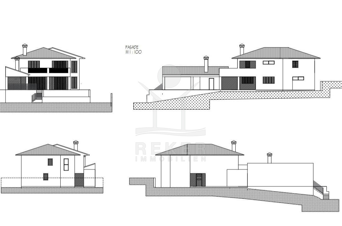 Nahe Labin, nur 1,6 km vom Meer entfernt, erwartet Sie eine moderne Villa, die Komfort und mediterrane Atmosphäre verbindet. Das Haus befindet sich in ruhiger Umgebung mit gepflegten Einfamilienhäusern, Olivenbäumen und Blick auf die Kvarner-Bucht. Über eine gepflasterte Zufahrt gelangen Sie auf das 926 m² große Grundstück mit Platz für mehrere Fahrzeuge. Strände, Restaurants und Einkaufsmöglichkeiten sind in wenigen Minuten erreichbar. Der Flughafen Pula ist rund 40 Minuten entfernt.