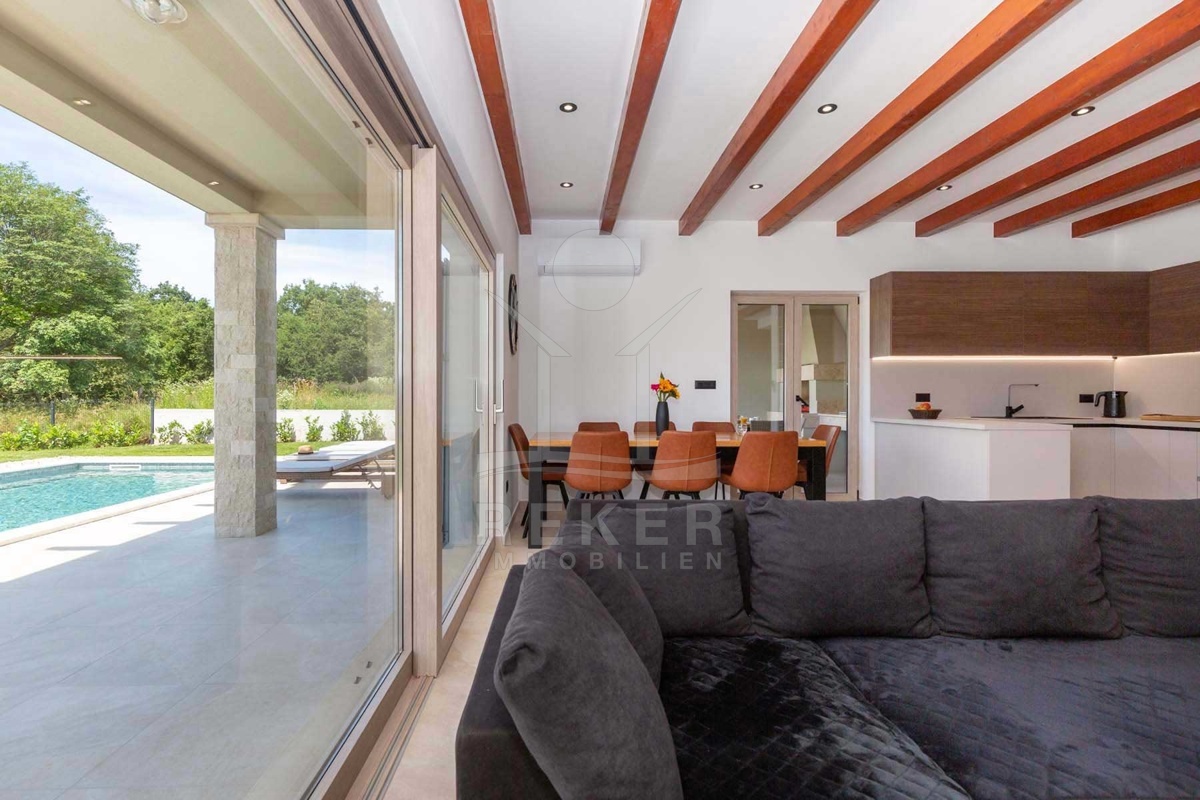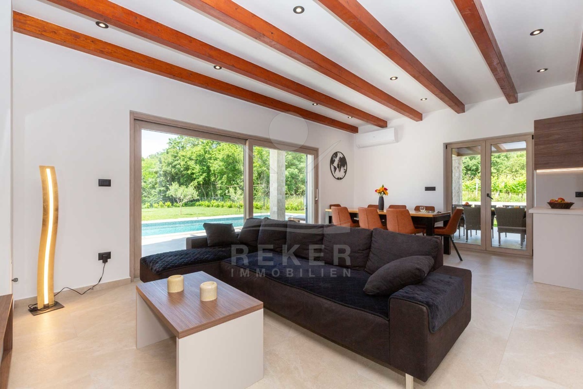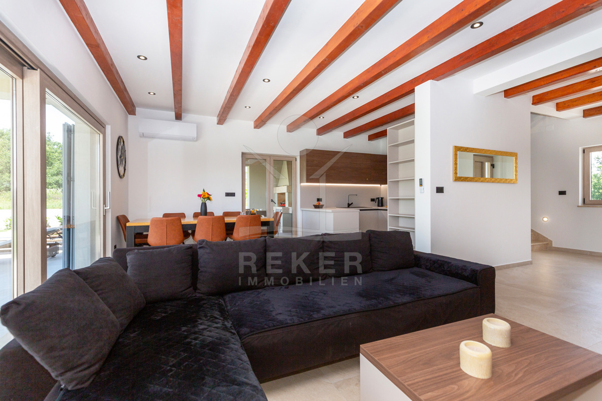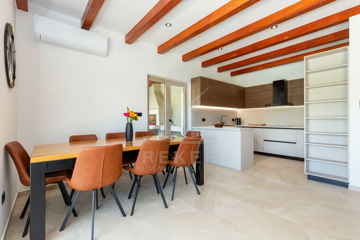 Das einladende Einfamilienhaus mit großem Garten und Pool liegt in einer sehr friedlichen und schönen Gegend in der Nähe von Labin. Mit nur 5 km Entfernung zur Stadt und weniger als 3 km zum nächsten großen Geschäft bietet es die perfekte Kombination aus Ruhe und Bequemlichkeit. Der Ferienort Rabac mit seinen wunderschönen Kiesstränden ist in wenigen Minuten mit dem Auto gut erreichbar, ideal für sonnige Tage am Meer. Die Umgebung eignet sich hervorragend für Erkundungstouren und Abenteuer, sei es zu Fuß, mit dem Fahrrad oder mit dem Auto. Dieses Anwesen verspricht eine Oase der Entspannung und Gelegenheit, die Schönheit der Region zu genießen.