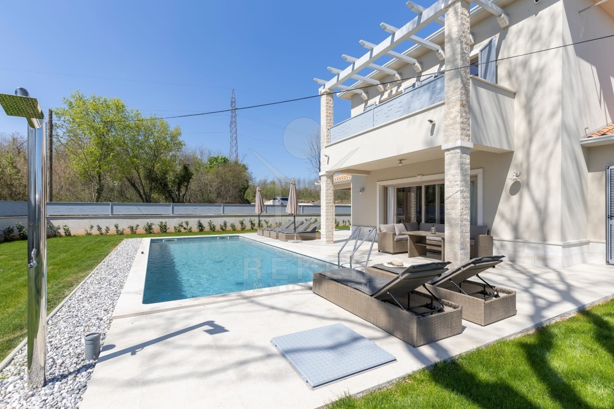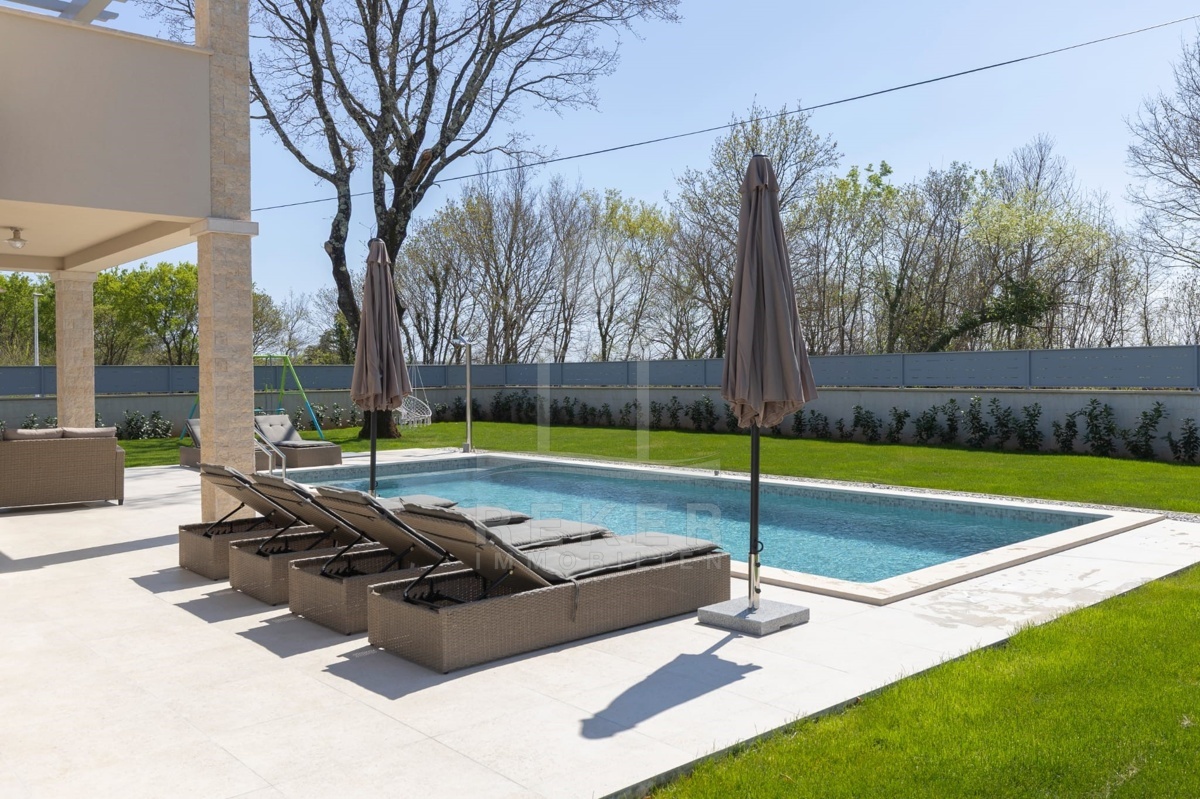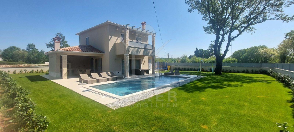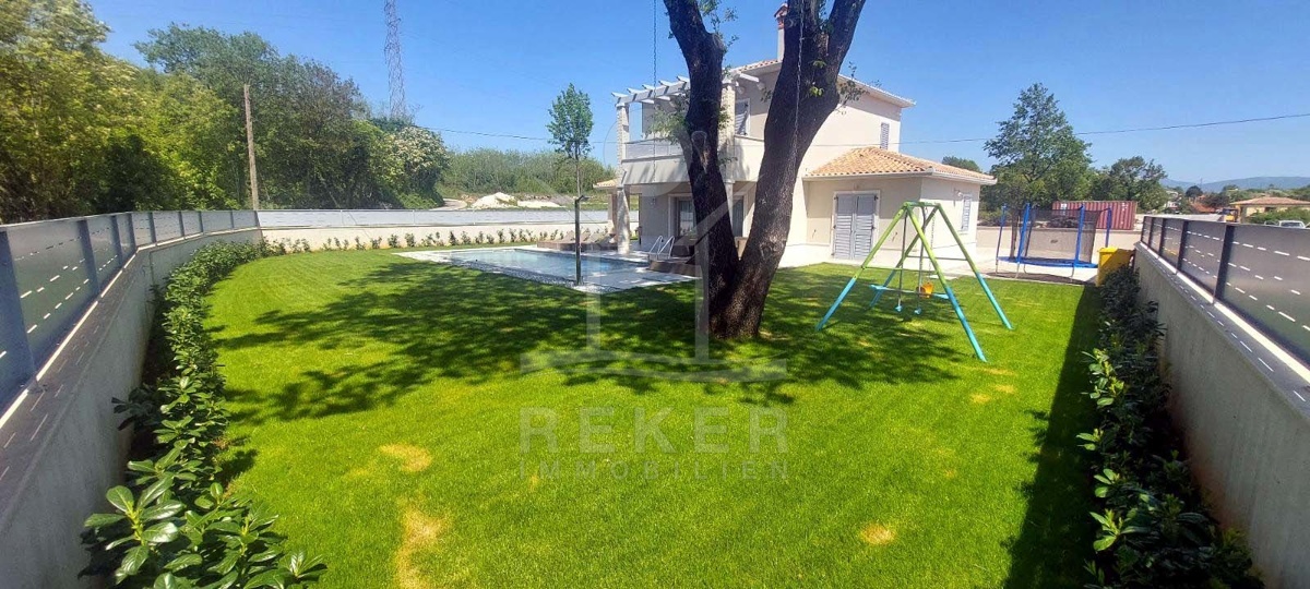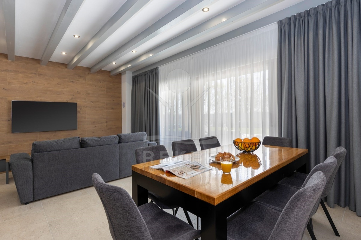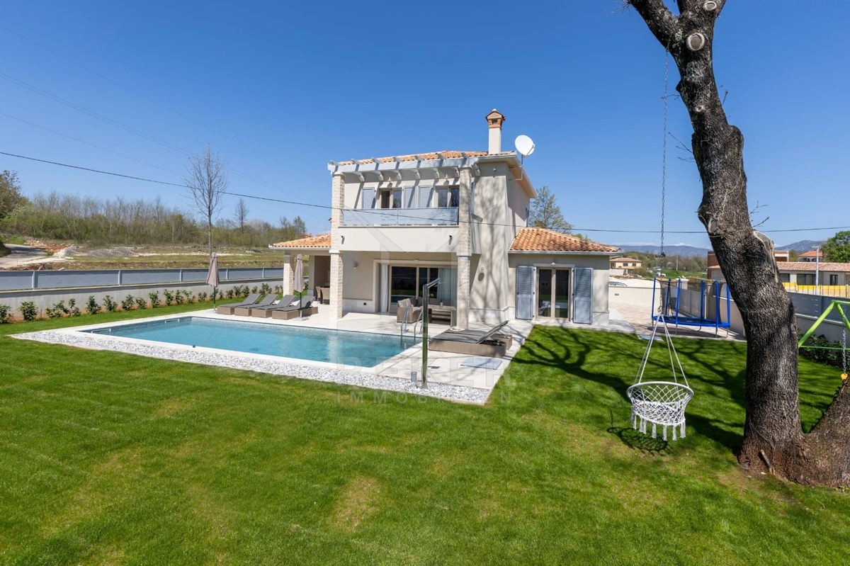 Dieses moderne Haus liegt am grünen Dorfrand von Labin. Ruhig, freundlich, naturnah. Der Garten grenzt direkt an eine bewaldete Fläche. Ideal, wenn Sie Ruhe suchen oder Platz zum Spielen für Kinder brauchen. Einkaufsmöglichkeiten, Schule und Supermarkt erreichen Sie schnell – und das Meer ist keine 10 Minuten mit dem Auto entfernt.