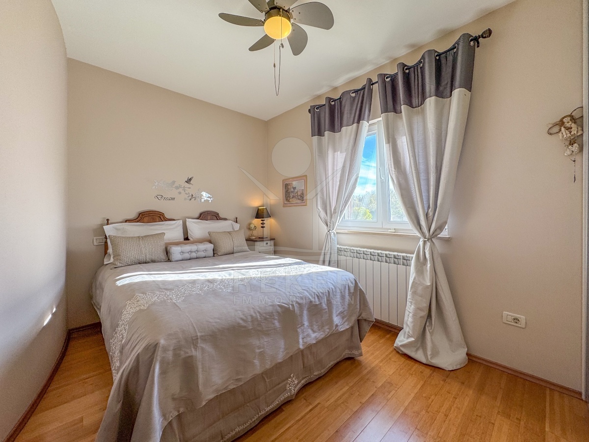 Am Ende eines kleinen Dorfes bei Labin liegt dieses Haus – ruhig, grün, ohne viel Trubel. Drumherum nur Wald und Natur. Keine laute Straße, keine Hektik. Und trotzdem: In zehn Minuten sind Sie in der Stadt. Zum Strand? Etwa 15 Minuten mit dem Auto. Auf dem Grundstück parken mehrere Autos problemlos. Gäste inklusive.