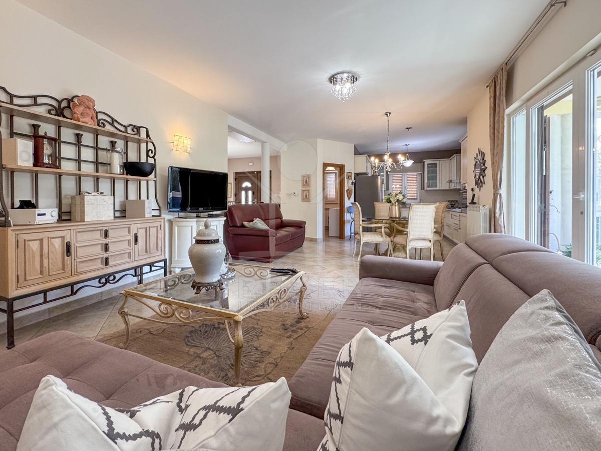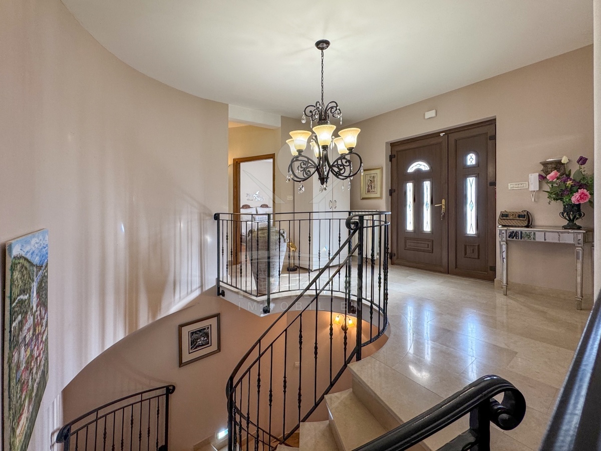Das Haus hat zwei Etagen. Unten: Garage, Taverne mit Küche, Gäste-WC, Abstellraum und Terrasse. Oben: große Wohnküche, Wohnzimmer, drei Schlafzimmer, zwei Bäder, Waschküche – und noch eine Terrasse. Die Räume sind möbliert. Modern, hochwertig, sofort nutzbar. Klimaanlage und Gasheizung sorgen für Komfort. Dazu: Videoüberwachung, Alarmanlage, stabiles WLAN. Alles da. Alles bereit.