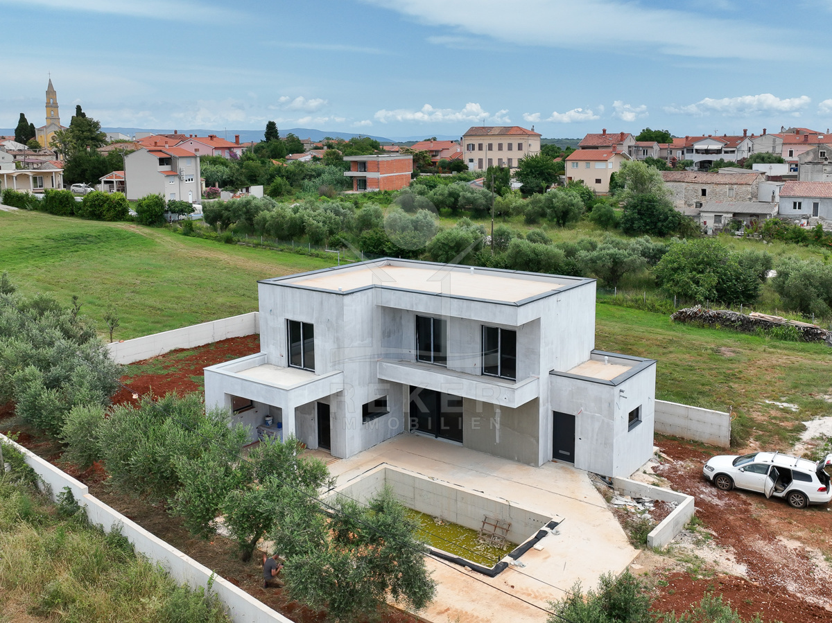 Die Villa befindet sich auf einem großzügigen Grundstück mit 1.073 m² am Rande der Bauzone und ist nach Südwesten ausgerichtet, mit einer Wohnfläche von 154 m². Das zweistöckige Haus befindet sich derzeit im Rohbau und wurde im Jahr 2024 erbaut. Als frei stehendes Gebäude bietet es viel Privatsphäre. Für Fahrzeuge stehen insgesamt 3 Parkplätze zur Verfügung.