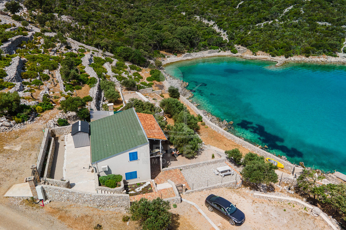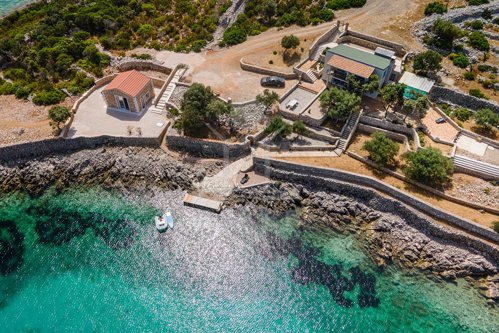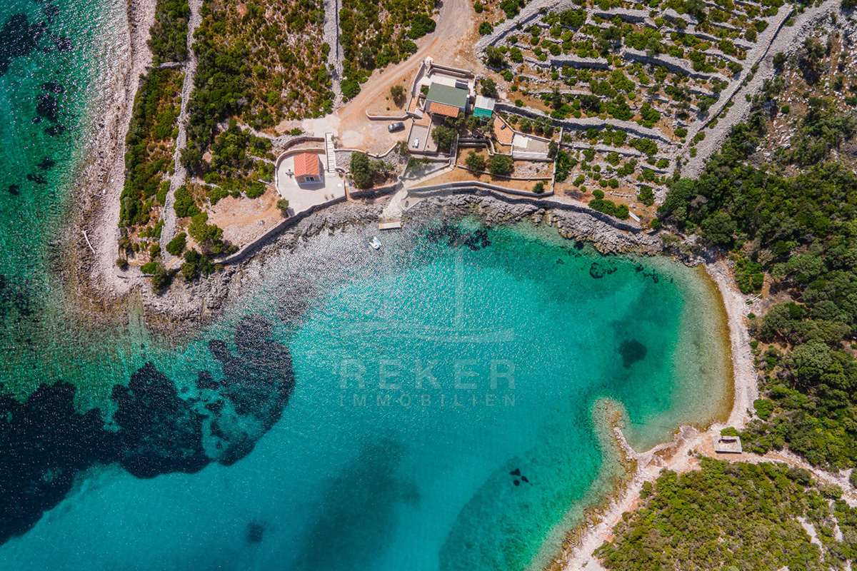 Dieses außergewöhnliche Anwesen empfängt Sie in einer traumhaften Bucht auf der Insel Lošinj, nahe Mali Lošinj. Sie wohnen im geschützten Naturgebiet, nur etwa 10 Autominuten vom Zentrum entfernt. Ruhe, Weite, Natur. Und dennoch kurze Wege. Über die gut ausgebaute Zufahrtsstraße erreichen Sie Ihr Haus bequem, auch mit einem hochwertigen Fahrzeug. Den Flughafen von Mali Lošinj erreichen Sie in rund 15 Minuten. Der bestehende Baustopp in der Umgebung gibt Ihnen Sicherheit. Aussicht und Privatsphäre bleiben langfristig erhalten.
