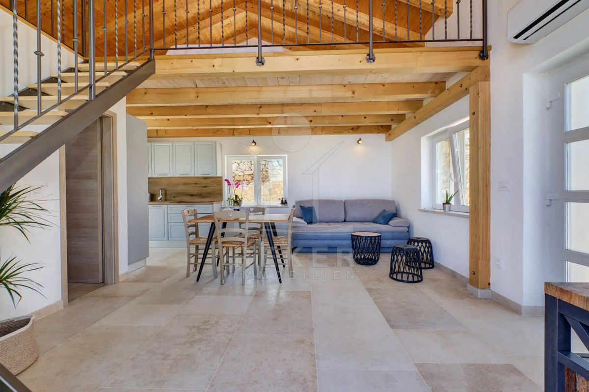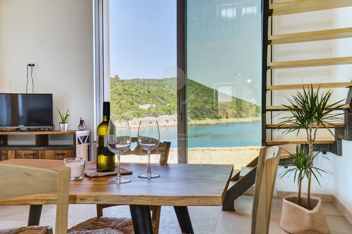 Ergänzt wird das Anwesen durch ein freistehendes Steinhaus mit 42 m², nur wenige Schritte vom Meer entfernt. Natürliche Steinelemente treffen auf modernen Komfort und schönen Meerblick. Ob als Gästehaus oder zusätzlicher Aufenthaltsbereich? Sie gewinnen in jedem Fall flexible Nutzungsmöglichkeiten. Beide Gebäude sind an das Stromnetz angeschlossen und verfügen über eine zuverlässige Versorgung.