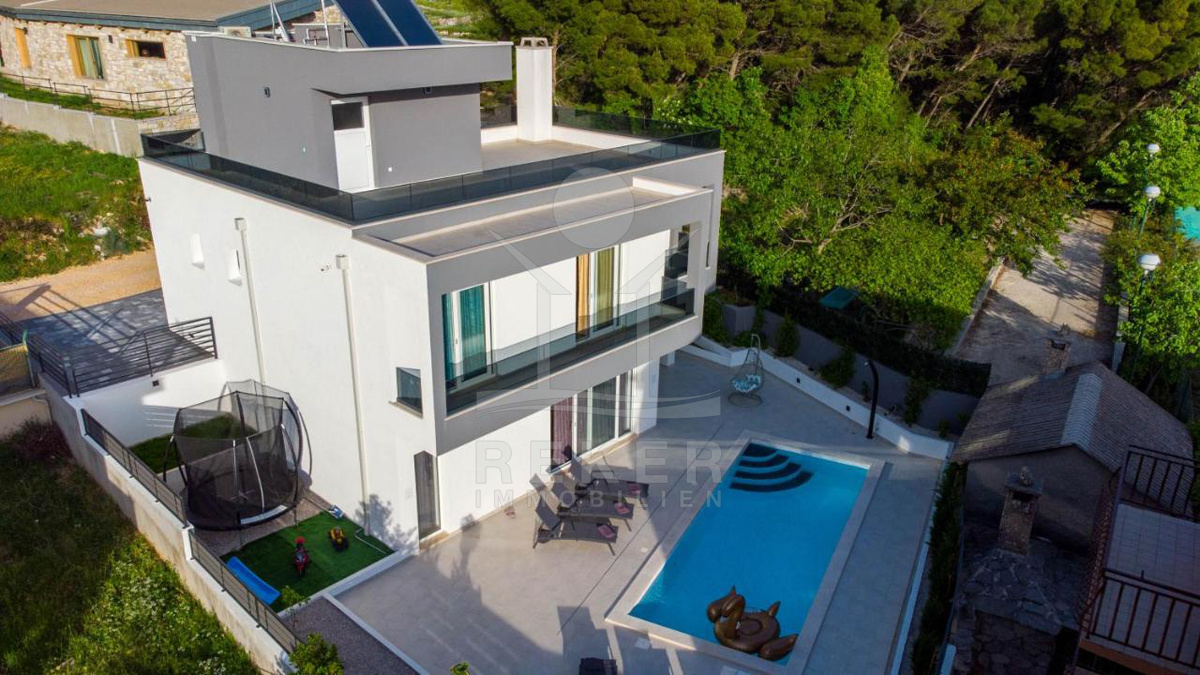 Wer die Ruhe sucht und trotzdem schnell im Geschehen sein will, ist hier genau richtig. Diese Villa liegt oberhalb von Makarska in einem kleinen, ruhigen Ort – umgeben von mediterraner Natur, nur rund zwei Kilometer vom Meer entfernt. Die erhöhte Lage bringt nicht nur eine entspannte Atmosphäre, sondern auch einen beeindruckenden Panoramablick aufs Meer. Die Zufahrt ist bequem mit dem Auto möglich, die Stadt und das Meer sind in wenigen Minuten erreichbar.