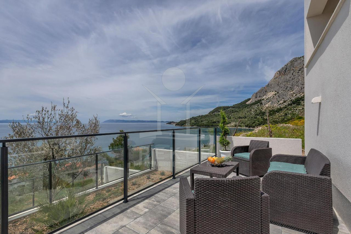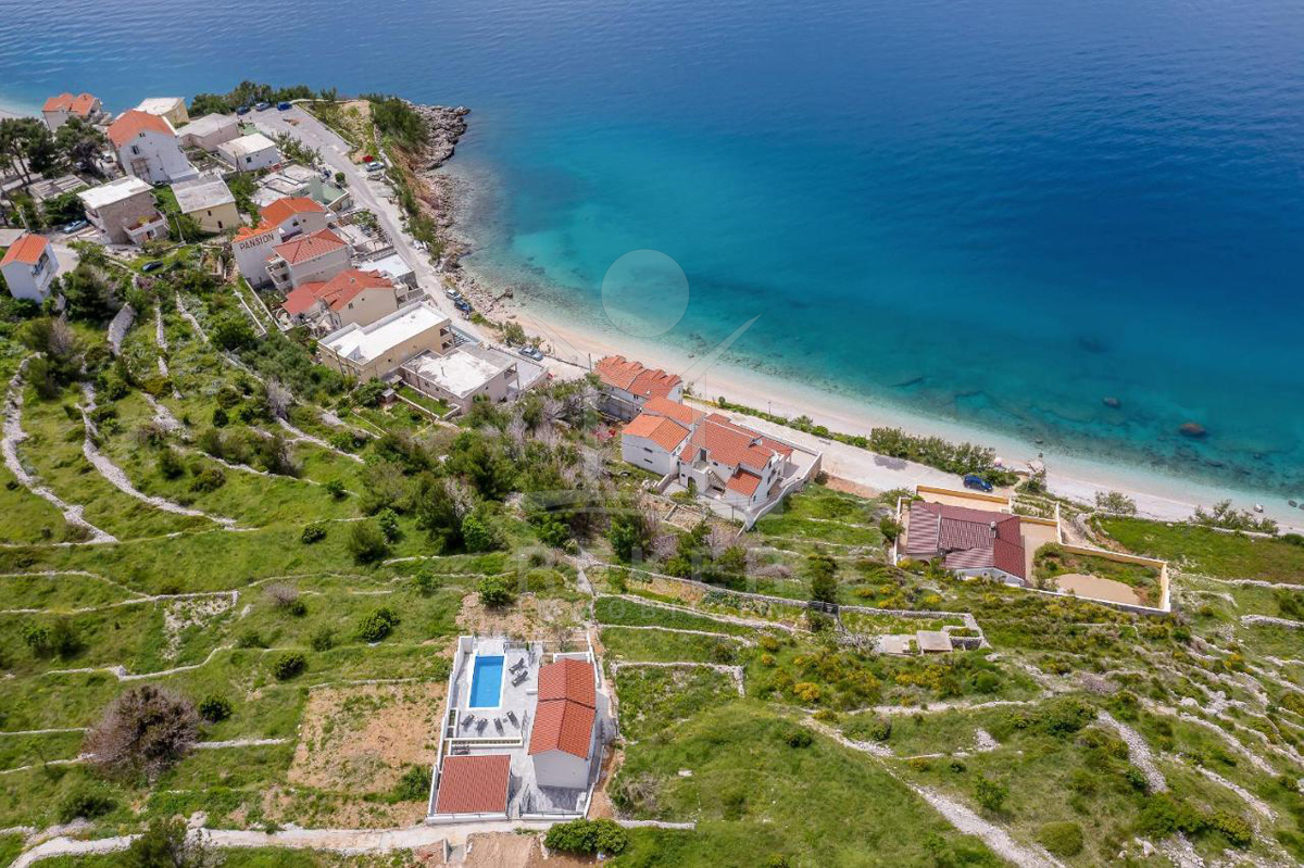 Im Süden der Makarska Riviera, erhöht gelegen, wartet diese moderne Villa auf neue Besitzer. Sie liegt nur 350 Meter vom nächsten Kiesstrand entfernt – ideal für alle, die das Meer gern vor der Tür haben. Die Umgebung ist ruhig und angenehm entspannt. Wer Privatsphäre schätzt, wird sich hier wohlfühlen. In wenigen Gehminuten sind Sie unten am Wasser. Kein Straßenlärm, keine Menschenmassen … einfach ankommen, durchatmen und genießen.