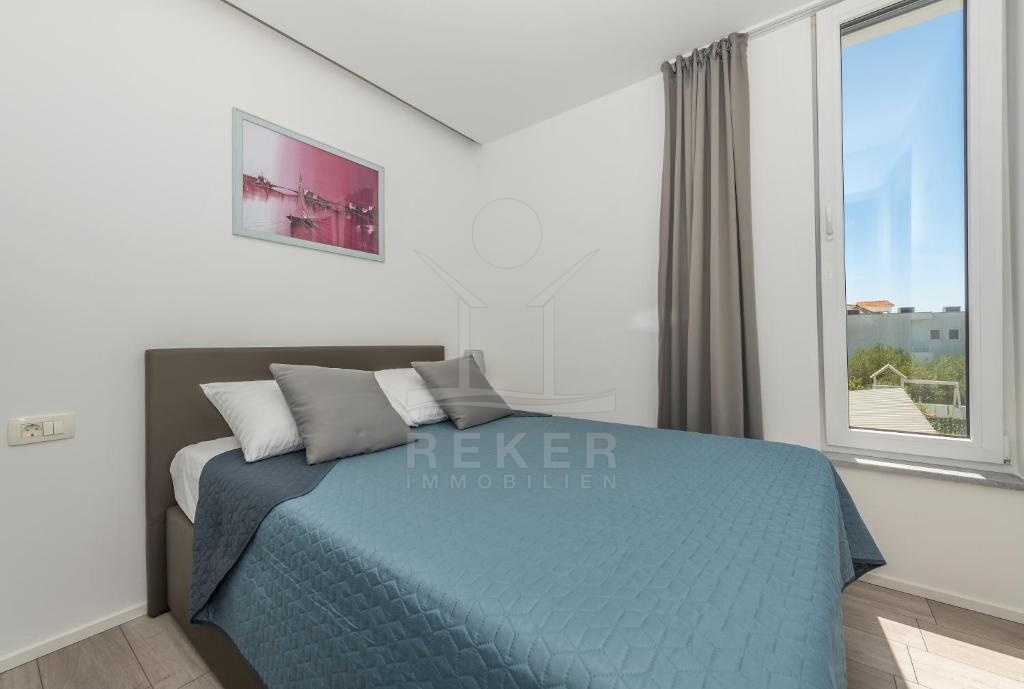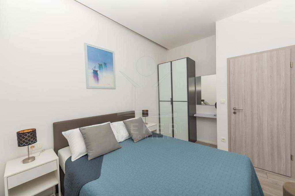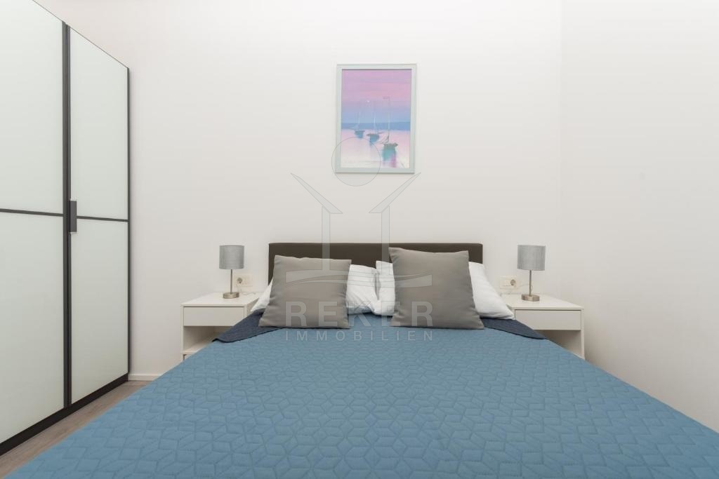 Diese Wohnung verfügt über eine hochmoderne Ausstattung mit Klimaanlage und ist komplett möbliert. Im Erdgeschoss finden Sie eine voll ausgestattete moderne Küche, ein Ess- und Wohnzimmer, ein Badezimmer sowie zwei Schlafzimmer.