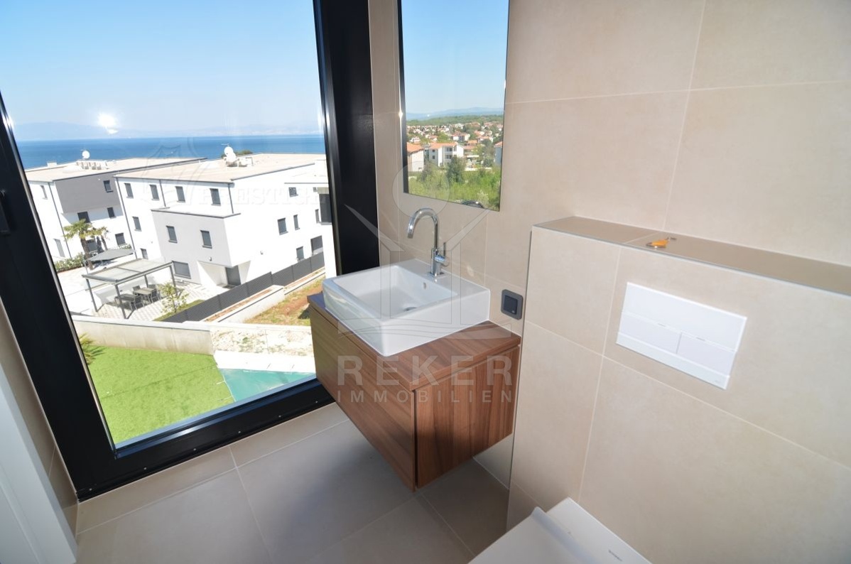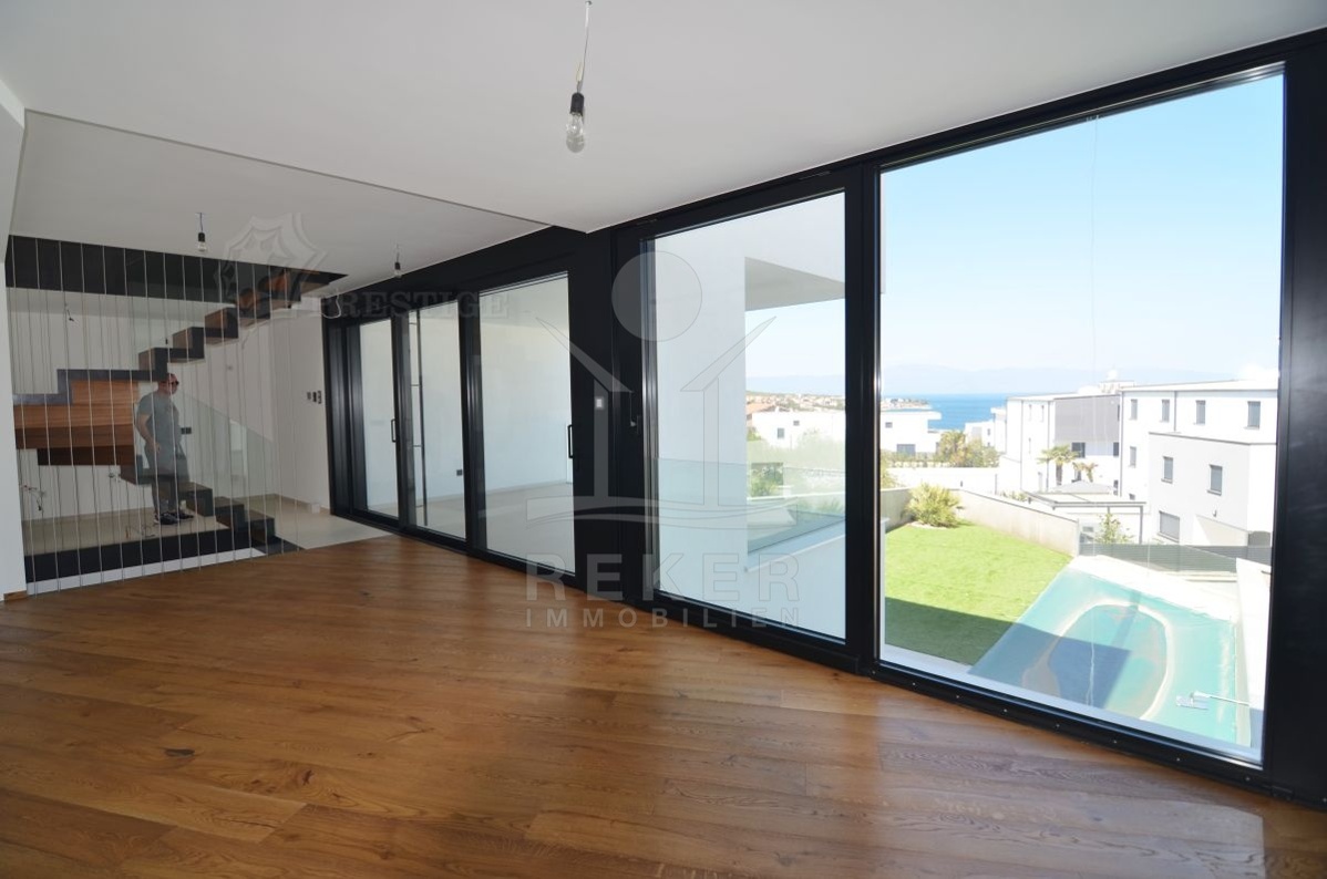 Nur 200 Meter vom Meer entfernt steht diese moderne Villa in Malinska auf der Insel Krk, einer der begehrtesten Adressen der Kvarner-Bucht. Die ruhige, gepflegte Umgebung bietet mediterranes Flair und einen herrlichen Blick auf das Meer. Den Strand erreichen Sie in wenigen Minuten zu Fuß. Ihr Auto parkt direkt am Haus.