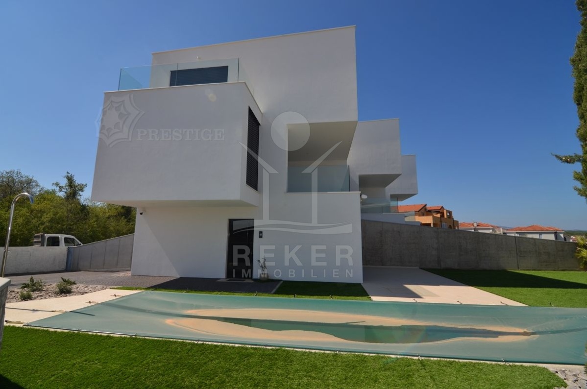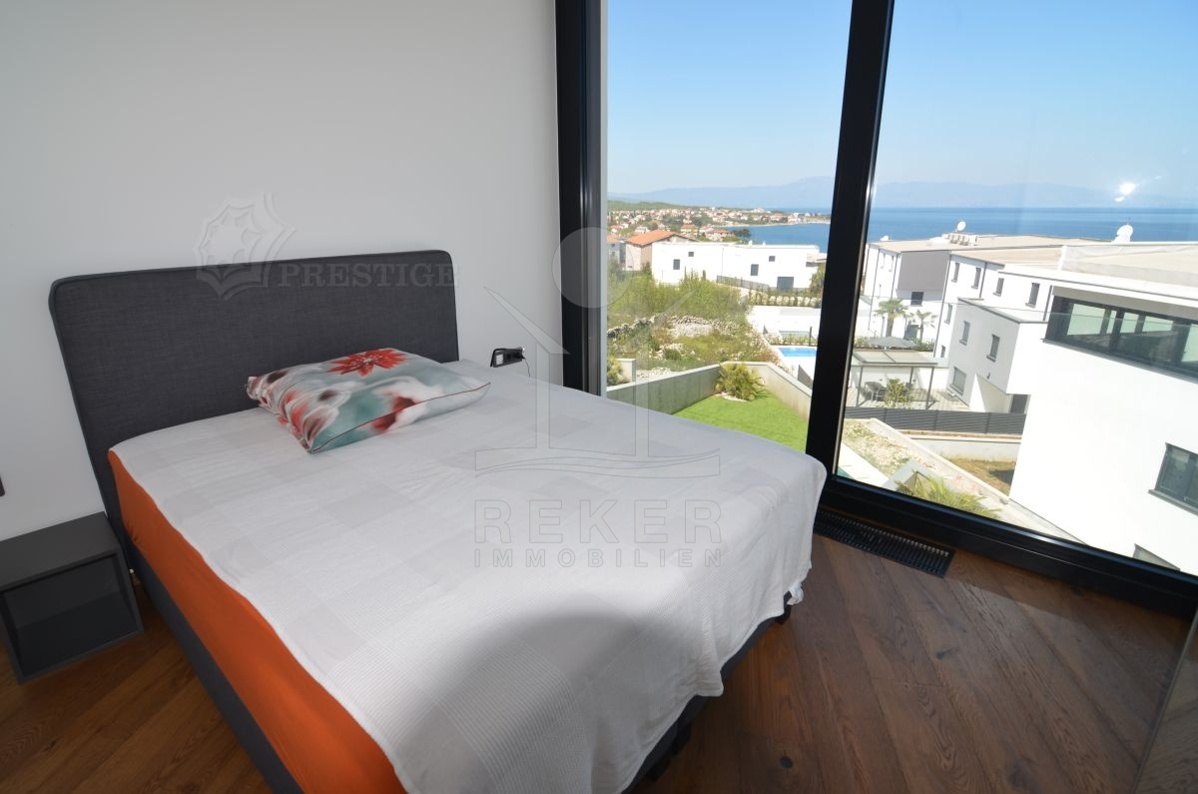 Nur 200 Meter vom Meer entfernt steht diese moderne Villa in Malinska auf der Insel Krk, einer der begehrtesten Adressen der Kvarner-Bucht. Die ruhige, gepflegte Umgebung bietet mediterranes Flair und einen herrlichen Blick auf das Meer. Den Strand erreichen Sie in wenigen Minuten zu Fuß. Ihr Auto parkt direkt am Haus.