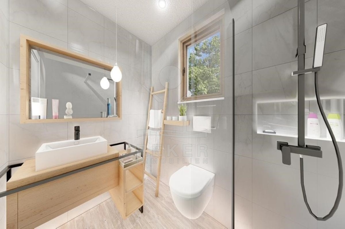 Im Erdgeschoss finden Sie das Wohnzimmer mit offener Küche und Essplatz, ein Schlafzimmer und ein Badezimmer, das Gäste-WC, 2 Abstellräume und das Treppenhaus. Das Obergeschoss begeistert mit 3 traumhaften Schlafzimmern und 3 Bädern.