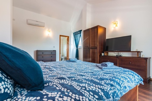 Der Außenbereich dieser Villa lädt zum Entspannen ein, besonders der großzügige Pool mit 43 m² Fläche, ideal für erfrischende Schwimmrunden und Sonnenbäder. Ein traditioneller Steingrill steht bereit, um gesellige Barbecue-Abende zu veranstalten. Die großzügige überdachte Terrasse (39 m²) ist der perfekte Ort, um im Freien zu dinieren oder einfach die paradiesische Umgebung zu genießen. Diese Villa bietet nicht nur Luxus und Komfort, sondern auch die ideale Umgebung, um das mediterrane Lebensgefühl in vollen Zügen zu erleben.