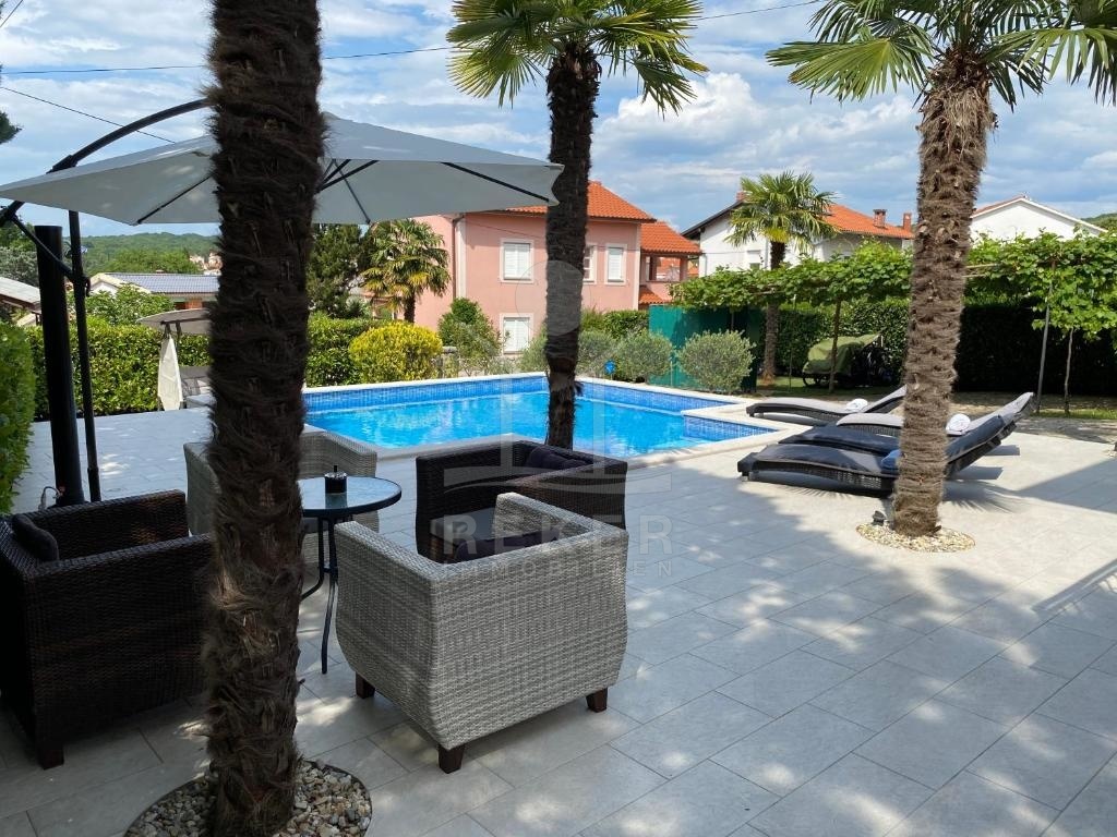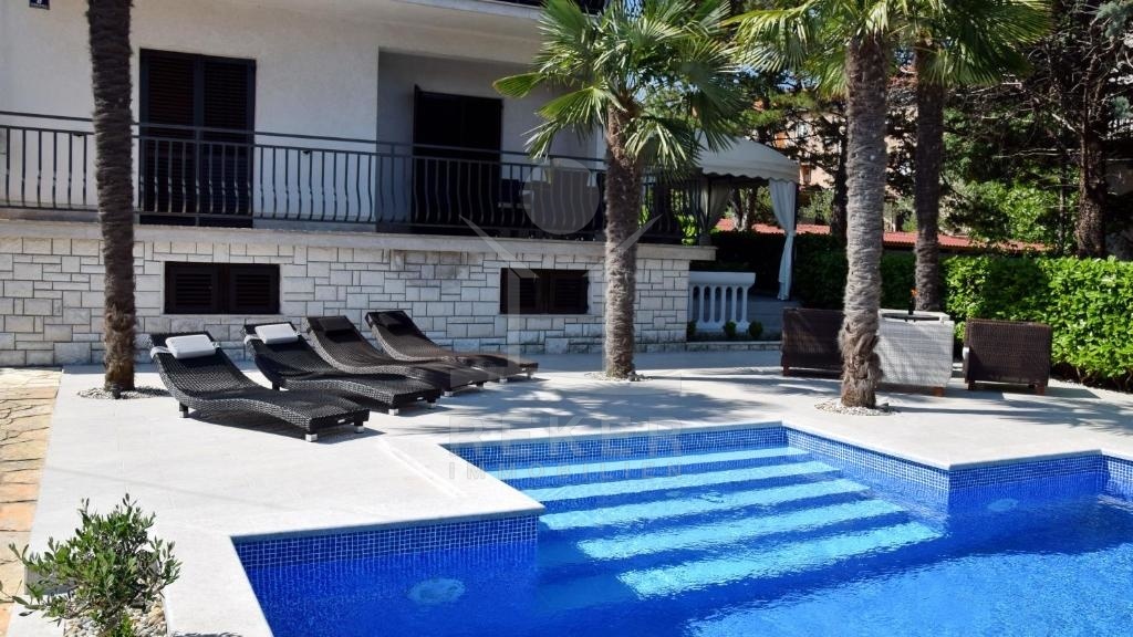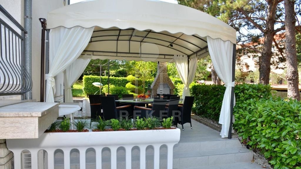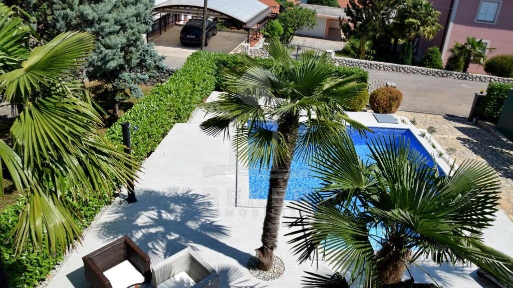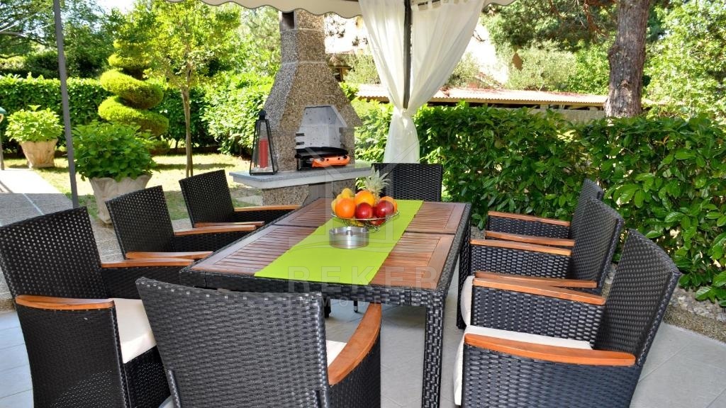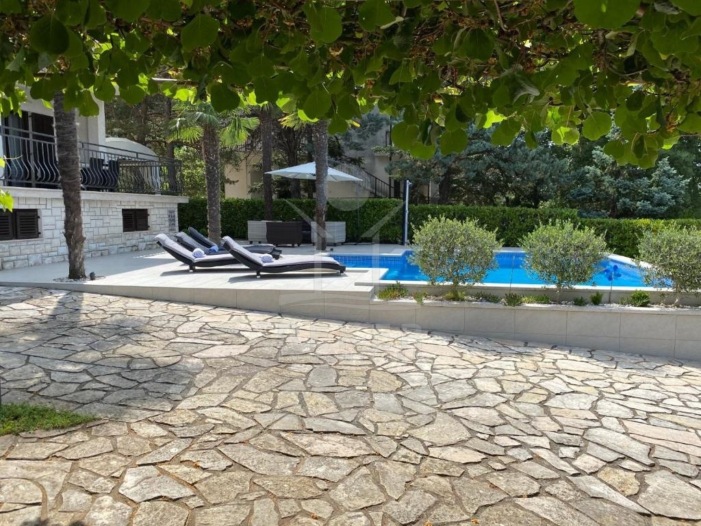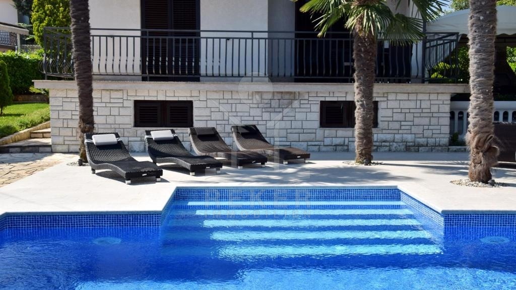 Das luxuriöse Anwesen liegt auf einem wunderschön angelegten, 570 m² großen Grundstück. Eine grüne Hecke und Palmen verleihen dem Außenbereich faszinierenden Charme und Privatsphäre. Das Haus verfügt mit 150 m² Wohnfläche über beeindruckenden Platz zum Wohnen. Es besteht aus einem Keller, einem Erdgeschoss und einem Stock, jeweils mit eigenem Eingang. Das Haus wurde 2018 renoviert und wurde vor Ort touristisch vermietet.