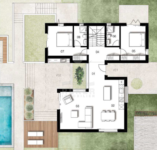 Diese Villa auf der Insel Krk bietet alles, was Familien oder Feriengäste sich wünschen. Ruhig gelegen in einem exklusiven Resort mit nur fünf Häusern, etwa 1.000 Meter vom Meer entfernt. Die Umgebung ist grün, gepflegt, voller Freiraum. Und drumherum: Tennis, Minigolf, Outdoor-Fitness, Boccia und ein Spielplatz – ideal für Kinder, Gäste oder sportlich Aktive. Vier private Stellplätze direkt vor dem Haus runden das Gesamtbild ab.