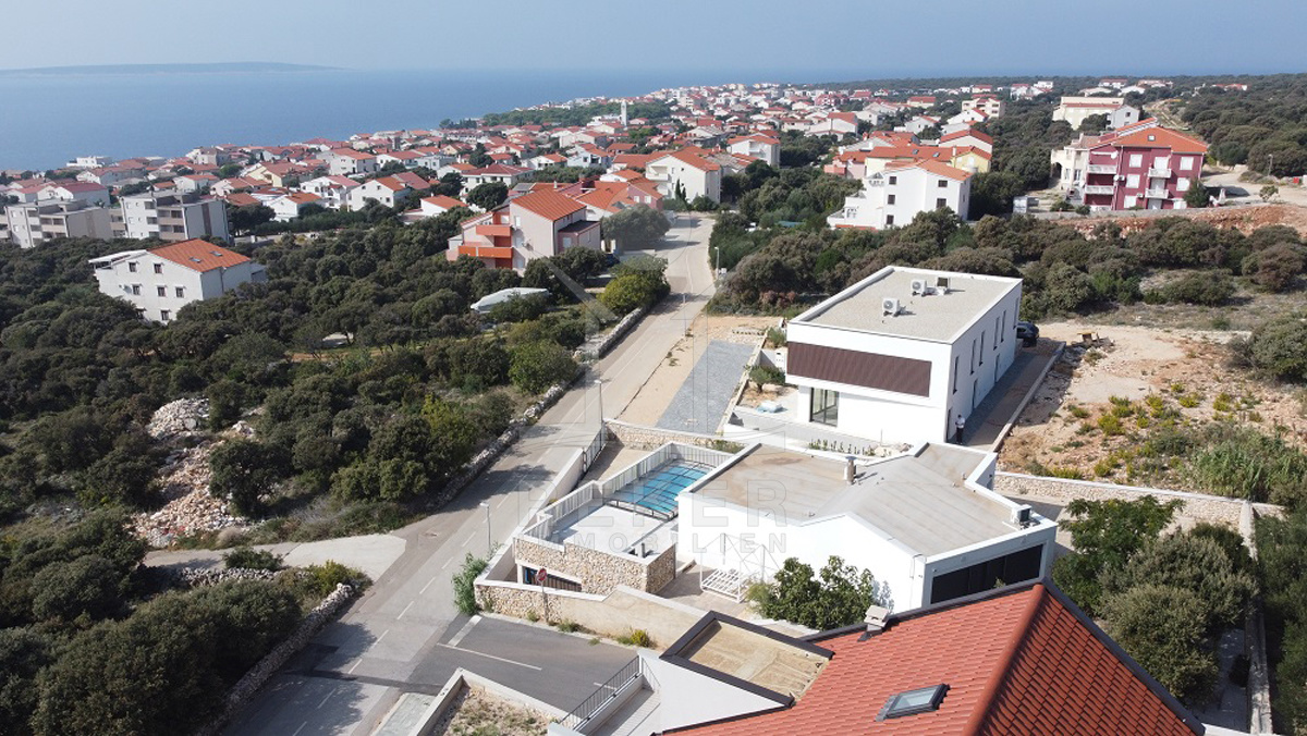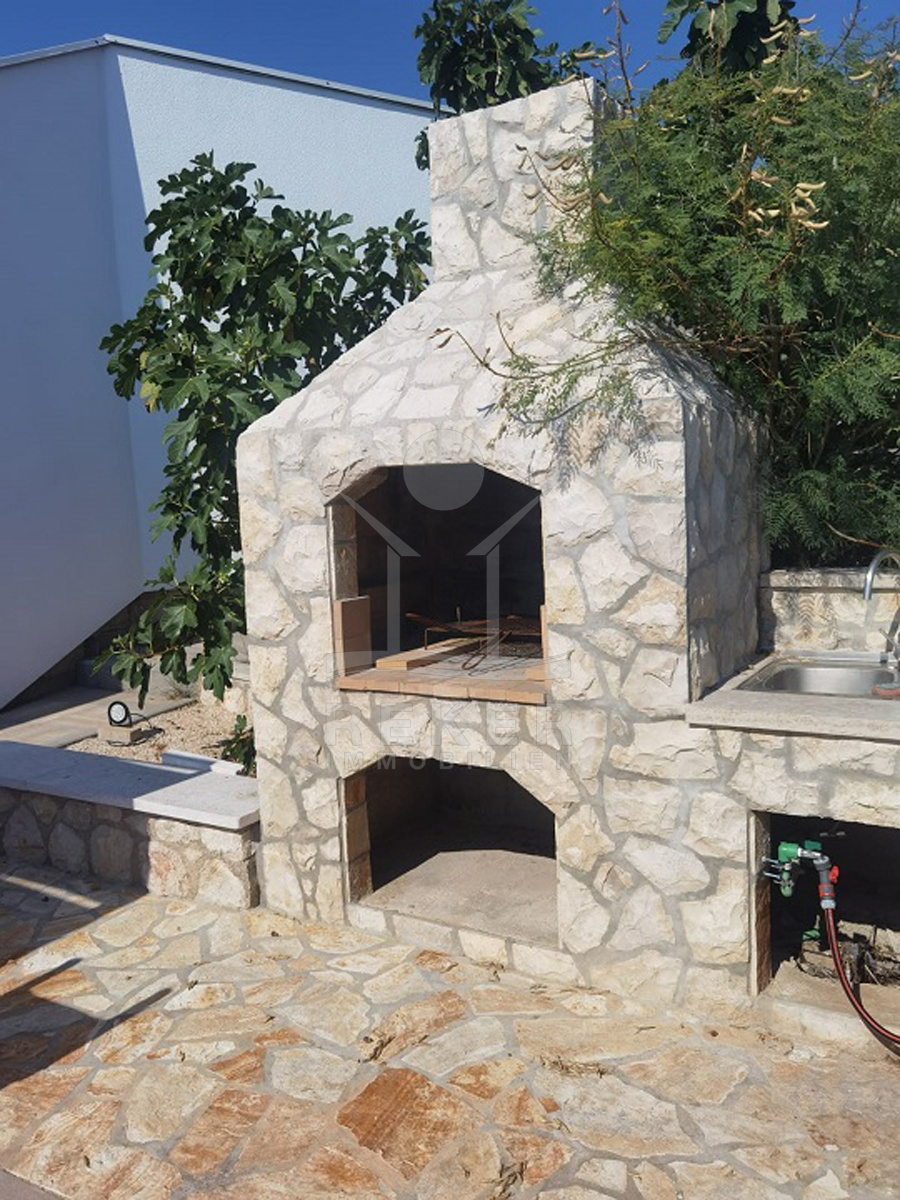Oben in den Hügeln von Mandre, ruhig gelegen und mit Weitblick aufs offene Meer: Diese ebenerdige Villa bietet genau das, was viele suchen – Ruhe, Aussicht, Privatsphäre. Das Grundstück ist vollständig eingefriedet und über eine gepflasterte Zufahrt erreichbar. Die Umgebung ist gepflegt und von modernen Häusern geprägt. Bis zum Meer sind es gerade einmal 400 Meter. Wer gern zu Fuß geht, erreicht den Strand in etwa zehn Minuten. Der großzügige Vorplatz bietet mehrere Stellplätze direkt auf dem Grundstück.