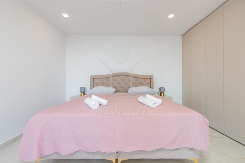 Das Obergeschoss empfängt Sie mit 2 Schlafzimmern, jeweils mit eigenem Badezimmer, und einem überdachten Balkon von 15,20 m² mit einem atemberaubenden Panoramablick auf das Meer. Gönnen Sie sich hier luxuriöse Momente der Ruhe und Entspannung.