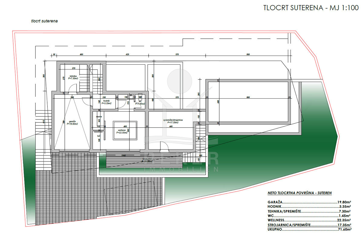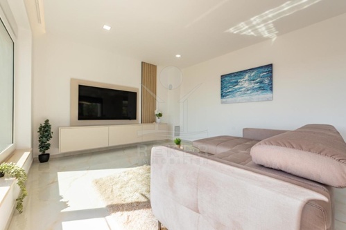 Die vollständig möblierte Villa bietet puren Luxus und Komfort. Im Untergeschoss befinden sich ein Gästezimmer, ein Wellnessbereich mit Sauna, ein Badezimmer, eine Garage und ein Abstellraum. Das Erdgeschoss besteht aus einem großzügigen Wohnzimmer, einer modernen Küche und einem eleganten Esszimmer, einem WC/Waschküche sowie einer überdachten Terrasse für entspannte Stunden im Freien.