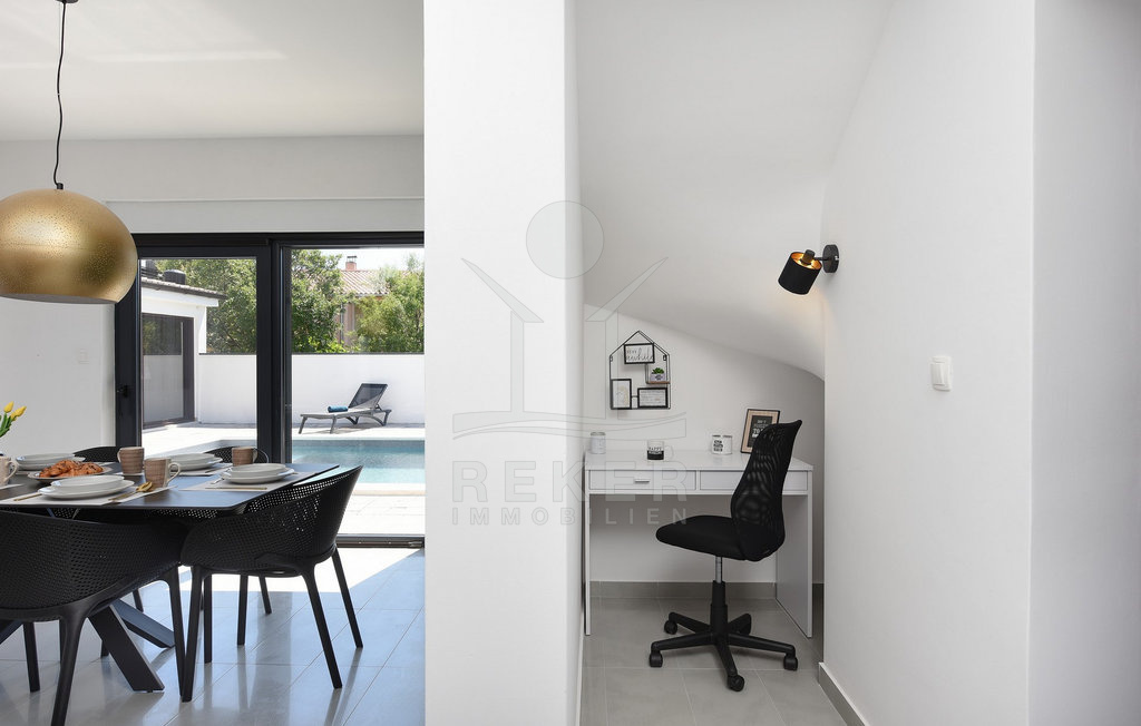 Maslenica – das bedeutet Ruhe, kurze Wege zum Meer und ein Ort, der wie gemacht ist für Familien oder entspannte Ferien. Genau hier steht diese freistehende Villa, nur etwa 400 Meter vom Meer entfernt. Die gepflegte Umgebung mit guter Anbindung macht das Haus zur passenden Wahl: für den Eigenbedarf oder als Feriendomizil zur Vermietung. Drei private Stellplätze direkt am Haus sorgen für entspannte Ankunft.