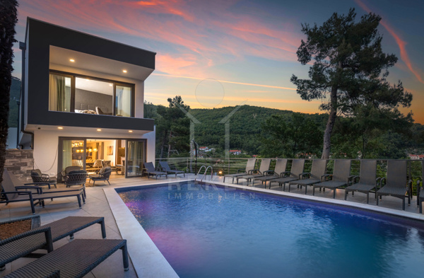 Im charmanten Mošćenička Draga befindet sich diese spektakuläre Luxus-Villa mit fantastischer Verkehrsanbindung. Zusätzlich zum 2022 erbauten Wohnparadies befinden sich drei Parkplätze auf dem etwa 850 m² großen Grundstück. Sensationelle 330 m² Wohnfläche verteilen sich hier auf drei Stockwerke.
