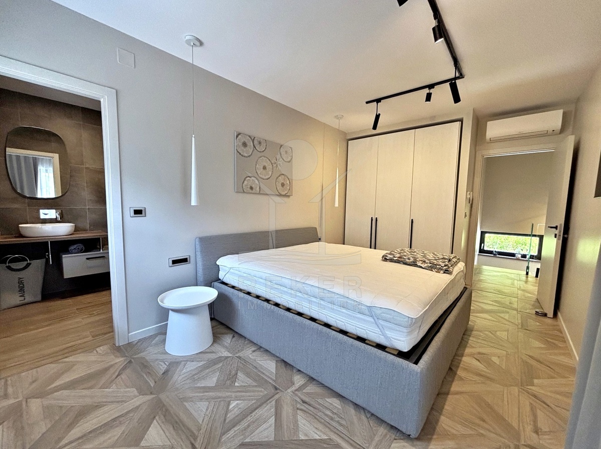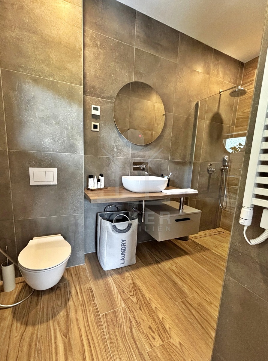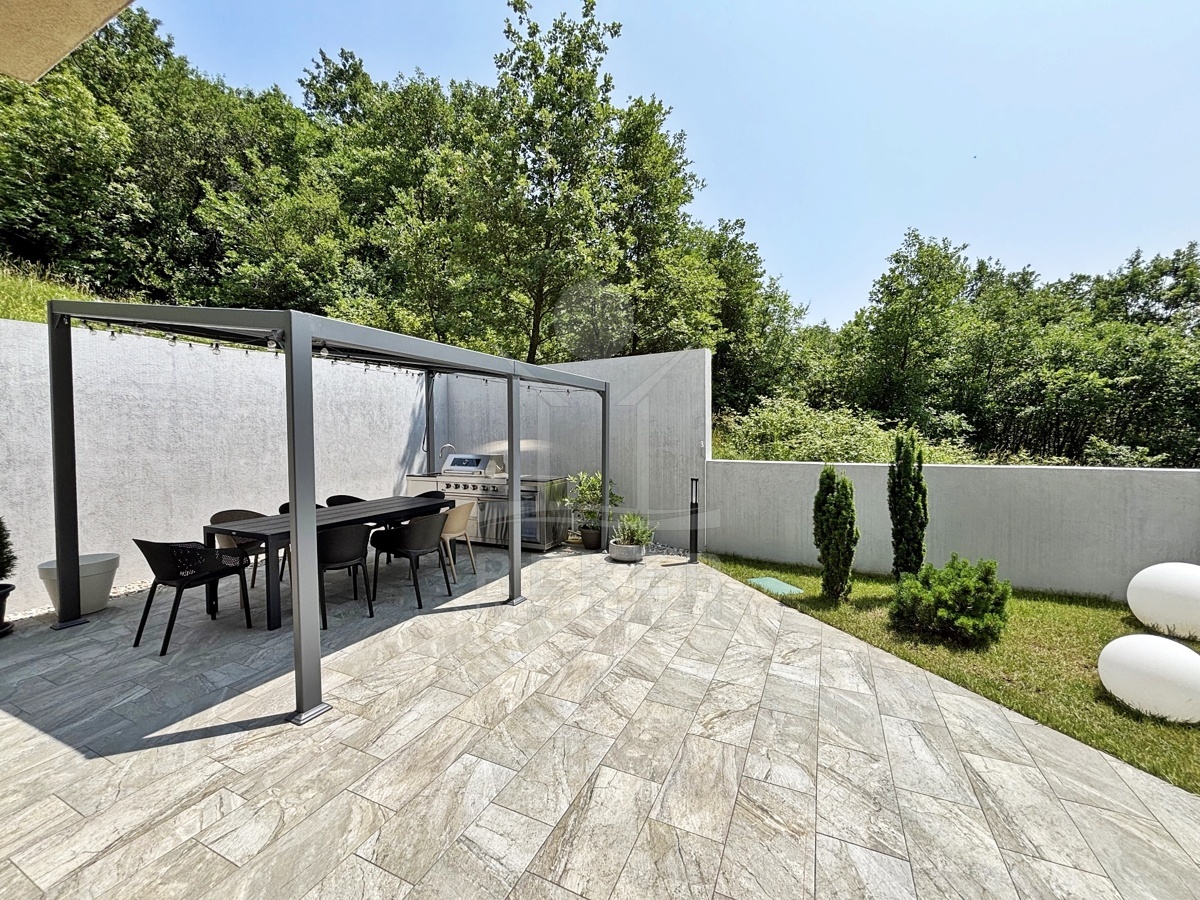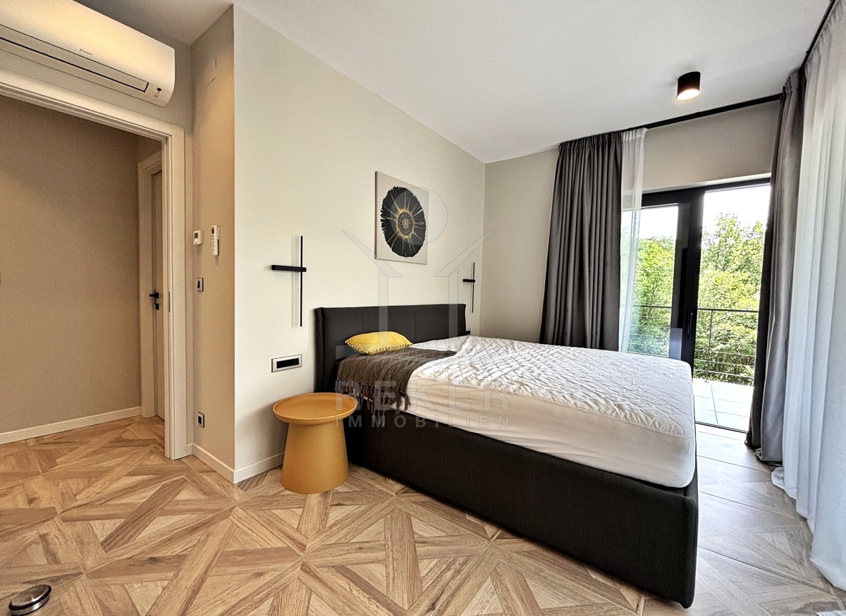 In einem ruhigen Teil von Mošćenička Draga, nur wenige Minuten oberhalb der Küste, liegt diese moderne Villa aus dem Jahr 2024. Umgeben von Wald und sattem Grün, wohnen Sie hier am Rande des Bergpanoramas … weit genug für absolute Ruhe, nah genug für alle Wege des Alltags. Die Südwest-Ausrichtung bringt ab dem Nachmittag Sonne auf Terrasse und Pool. Über die Zufahrtsstraße erreichen Sie den geschützten Innenhof mit elektrischer Schiebetür. Alles wirkt klar. Aufgeräumt. Hochwertig.