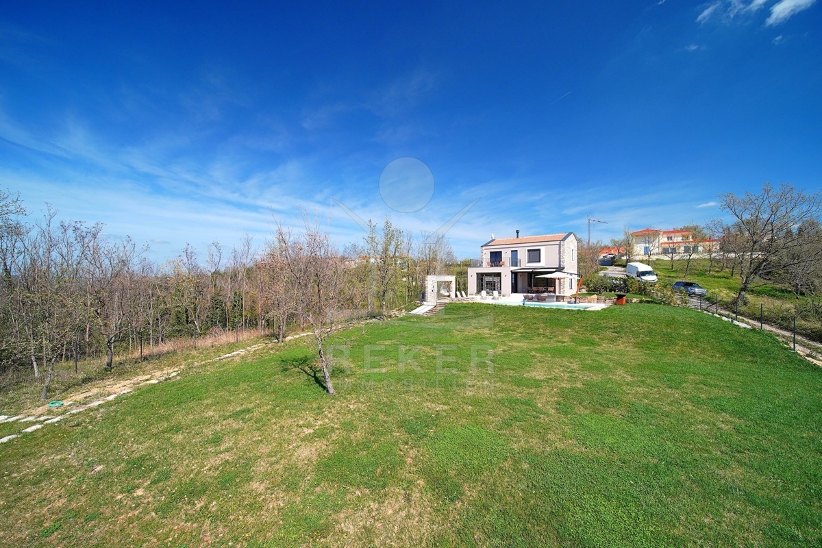 Die Villa bietet eine einzigartige Kombination aus Stille, atemberaubender Natur und wunderschönem Blick auf die grüne Landschaft in der Nähe von Motovun. Die Lage ist ideal für Ruhe suchende Erholungssuchende, die die Schönheit der Natur und die Ruhe der Umgebung genießen möchten. Das Meer erreichen Sie in nur wenigen Autominuten (ca. 10-15), zur Gemeinde Motovun und anderen Einrichtungen sind es ebenfalls kurze Strecken. Die Umgebung punktet mit zahlreichen Sport- und Freizeitmöglichkeiten, wie Fußball- und Basketballplätzen, dem Rad- und Wanderweg Parenzana und einem geschützten Wald im Mirna Flusstal. Städte wie Pazin und Oprtalj sind in der Nähe, ebenso wie die Autobahneinfahrt Višnjan und der Flughafen Pula. Erleben Sie die Vielfalt von Zentralistrien und lassen Sie sich von der bezaubernden Landschaft und den einzigartigen Sehenswürdigkeiten der Umgebung verzaubern.
