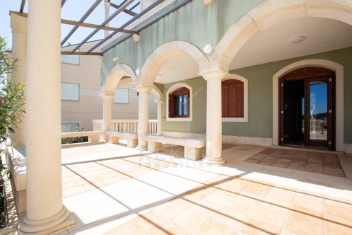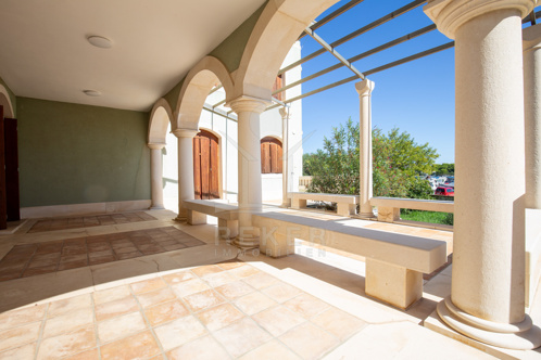 Das Anwesen befindet sich auf einem großzügigen Grundstück von 1.813 m², umgeben von einer Steinmauer, die eine private Atmosphäre gewährleistet. Einheimische Vegetation und majestätische Olivenbäume (ca. große 30 Bäume) schmücken das weitläufige Gelände und schaffen eine idyllische Umgebung. Das dreistöckige Gebäude wurde im Jahr 1997 erbaut und bietet eine großzügige Wohnfläche von 430 m². Die Villa wurde mit den hochwertigsten Materialien der Zeit errichtet, darunter Brac-Stein für Terrassen und Außentreppen, italienische Keramik sowie Installationen für Zentralheizung. Ein Nebengebäude mit Küche, Badezimmern und Schlafzimmern ergänzt das Anwesen, während ausreichend Parkplätze zur Verfügung stehen.