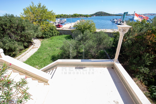 Die einmalige Villa befindet sich in einer unverbaubaren Lage direkt am Meer auf der zauberhaften Insel Murter in der Region Dalmatien. Die Insel ist bekannt für ihre idyllischen Ortschaften wie Tisno, Jezera, und Betina sowie den Hauptort Murter, die alle mit traditionellem Flair und guter Gastronomie locken. Durch die Drehbrücke ist die Insel während der Saison bequem vom Festland aus erreichbar. Die Bewohner leben hier seit Generationen von Fischfang und Landwirtschaft, was sich in den vielen erstklassigen Restaurants widerspiegelt. Der Hauptort Murter mit seinem belebten Zentrum bietet zahlreiche Cafés, Restaurants und Souvenirläden. Ein jährliches Highlight ist die traditionelle Regatta der Gajeta-, Segelboote am Festtag "Sv. Mihovil". In Betina sorgen alte Gassen und gemütliche Restaurants für Urlaubsflair, während Jezera mit seinem geschützten Hafen und guten Fischlokalen punktet. Der kleine Ort Tisno besticht durch seine Pfarrkirche und die Kirche Madonna von Caravaggio. Die gesamte Insel Murter ist ein Geheimtipp für entspannten Urlaub in Kroatien.