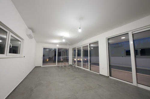 Die moderne Villa auf einem 511 m² großen Grundstück bietet Privatsphäre und Eleganz. Das Gebäude erstreckt sich über 2 Etagen mit einer großzügigen Wohnfläche von 190 m² und wurde im Jahr 2024 als Neubau fertiggestellt. Die hochwertige Konstruktion und Ausstattung garantieren Komfort mit Klimaanlage und Fußbodenheizung. Die umliegende Mauer und der schön angelegte Garten sorgen für ein ruhiges und luxuriöses Ambiente. Vier Parkplätze stehen für Bewohner und Gäste zur Verfügung.