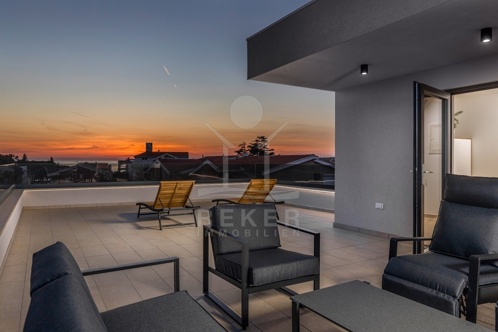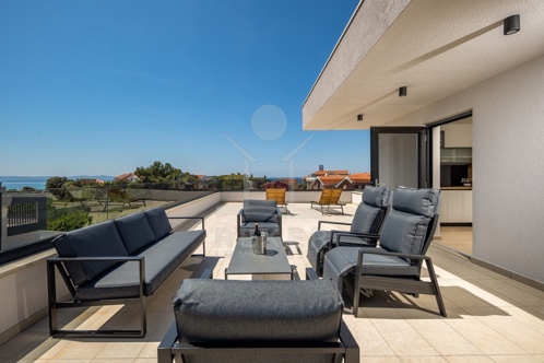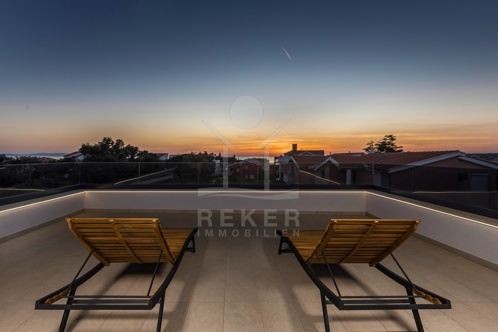 2. Obergeschoss: Dachterrasse, Küchenzeile, Außenkamin, Sitzlounge & schönem Meerblick