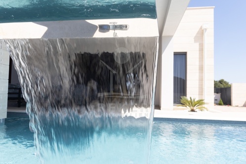 Der beeindruckende Pool mit und Wasserfall bietet eine herrliche Erfrischung an heißen Tagen. Eine sonnige Terrasse, ausgestattet mit bequemen Liegen, lädt zum Sonnenbaden ein, während die Sommerküche mit Außenkamin und Sitzlounge der ideale Ort für gesellige Zusammenkünfte ist. Dank der Gartenbewässerung bleibt der Außenbereich stets üppig und einladend, sodass Sie unvergessliche Momente im Freien verbringen können.