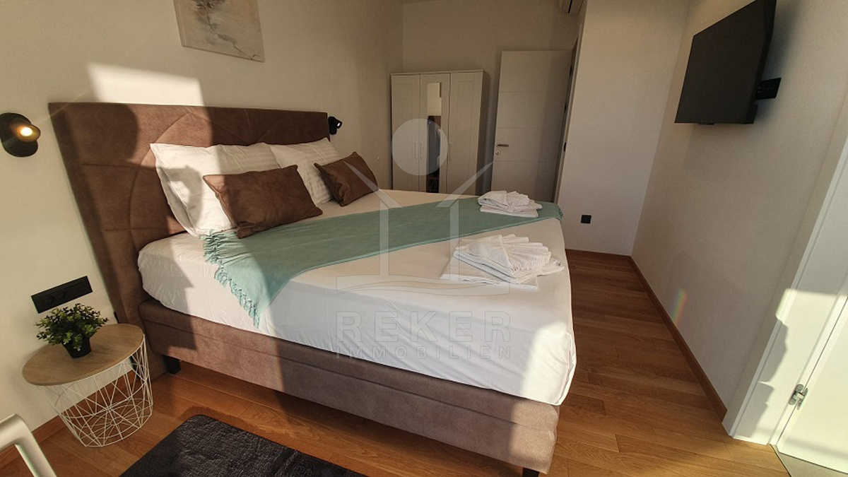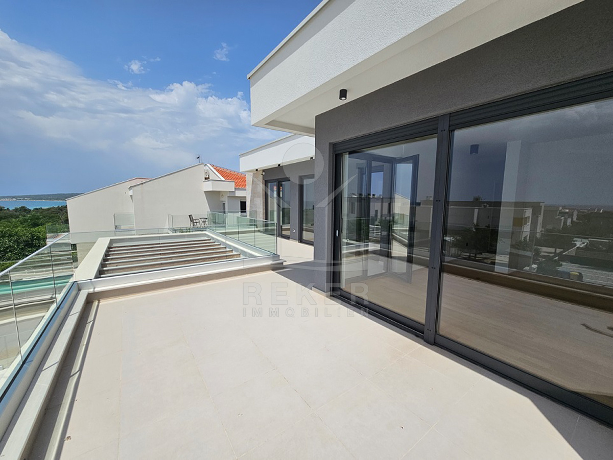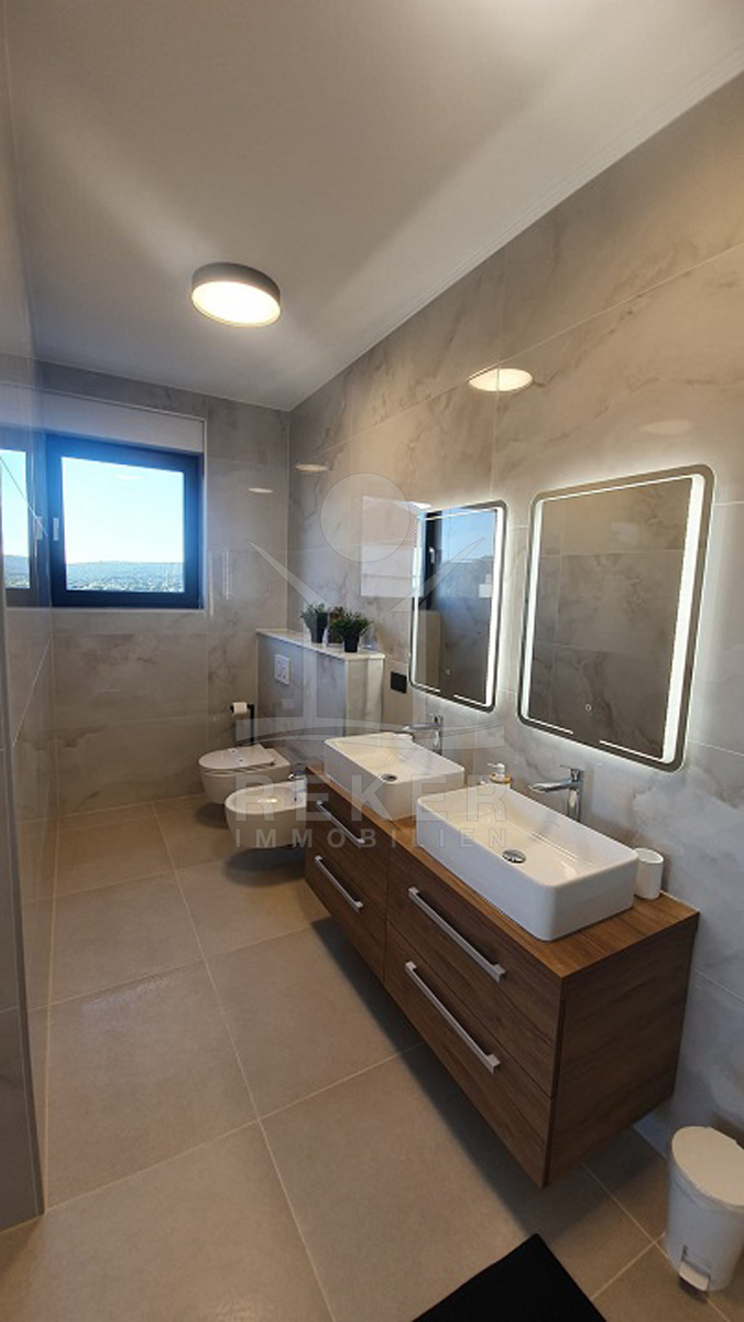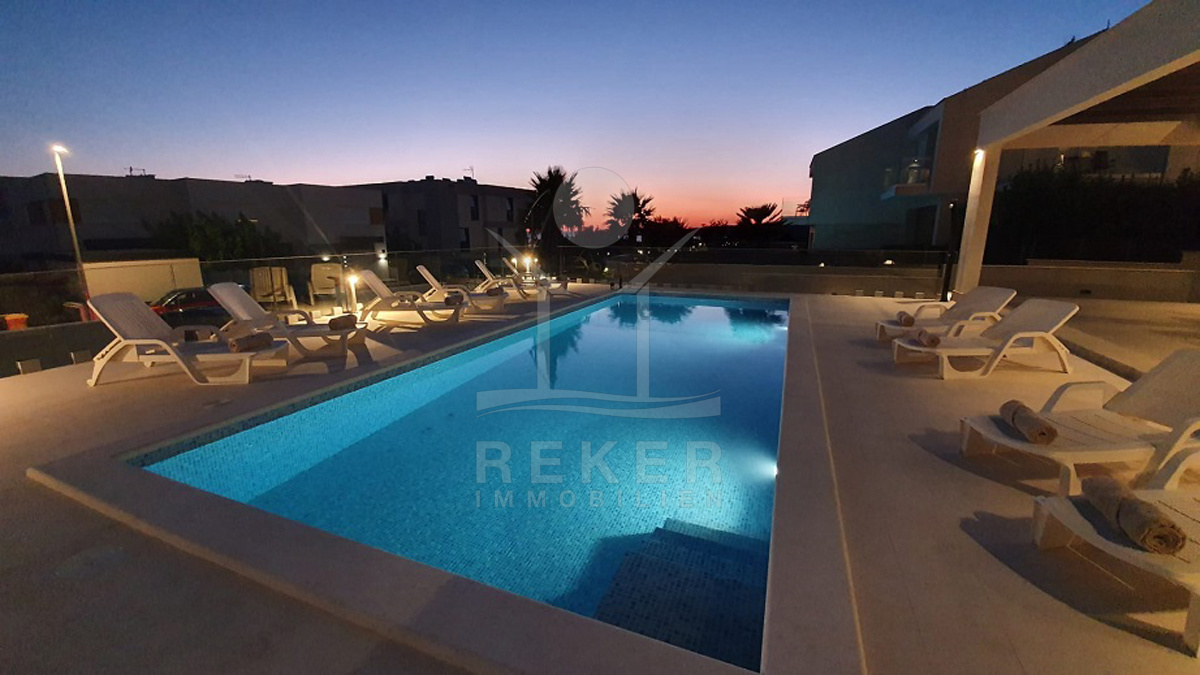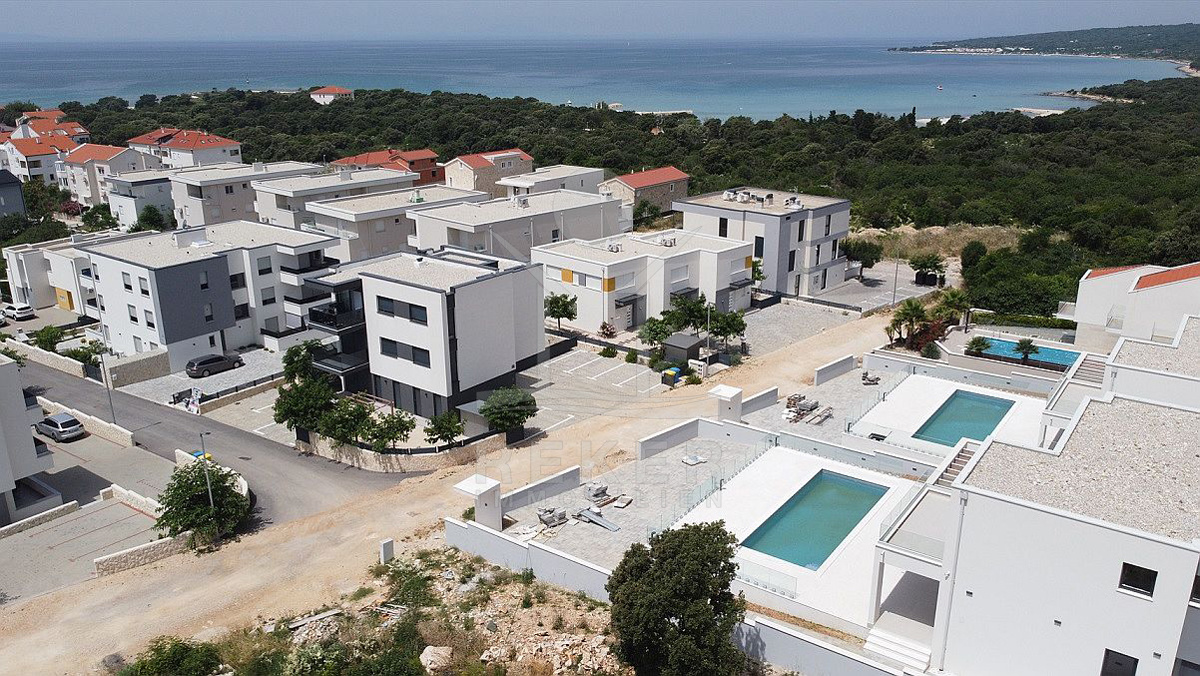 Im südwestlichen Teil von Novalja – einer der begehrtesten Wohngegenden – steht diese freistehende Villa nur rund 300 Meter vom Meer entfernt. Die Nachbarschaft ist modern und gepflegt, das Umfeld ruhig. Ideal für alle, die Privatsphäre und stilvolles Wohnen in Küstennähe suchen. Auf dem eigenen Grundstück parken Sie 3 bis 4 Fahrzeuge bequem – auch die E-Ladestation ist vorbereitet. Zugang zur Villa erfolgt über ein elektrisches Zufahrtstor und ein repräsentatives Eingangsportal mit Kamera und Gegensprechanlage.