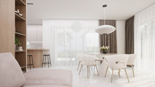 Der Außenbereich bietet eine 84 m² große Terrasse, die zu entspannten Stunden und geselligen Abenden einlädt. Der Swimmingpool, derzeit im Bau, sorgt bald für erfrischende Abkühlung und zusätzlichen Komfort.