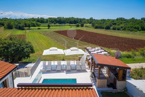Die traumhafte Villa liegt n einer wunderschönen ruhigen Lage, am Rande der Bauzone, in der Nähe befinden sich mehrere Restaurants und renommierte Weingüter. Eine perfekte Mischung aus Ruhe und zentraler Lage. Das Meer ist nur 7 km entfernt, sodass Sie die Möglichkeit haben, die wunderschönen Strände und Buchten der Region zu erkunden. Auch das Zentrum von Novigrad ist nur 7 km entfernt und bietet eine Vielzahl von Einkaufs- und Ausgehmöglichkeiten. Hier können Sie gemütlich flanieren, die malerische Altstadt entdecken und das mediterrane Flair genießen. Die Anlage verfügt über eine Solarheizung mit elektrischer Wasserpumpe. Auch an die Kinder wurde gedacht, mit einem speziellen Spielbereich auf dem Gelände. Die Villa bietet somit ideale Bedingungen, um sich zu entspannen und trotzdem in der Nähe des Geschehens zu sein.