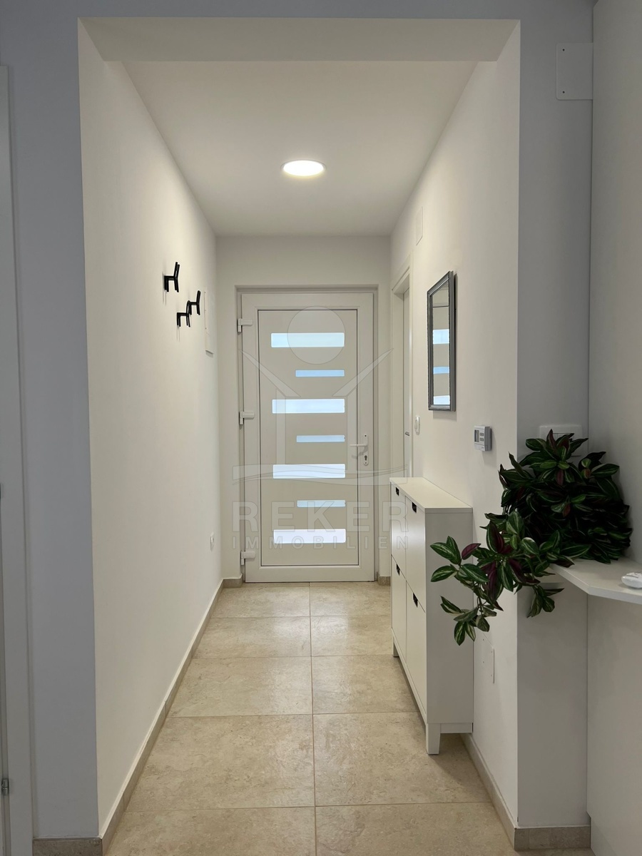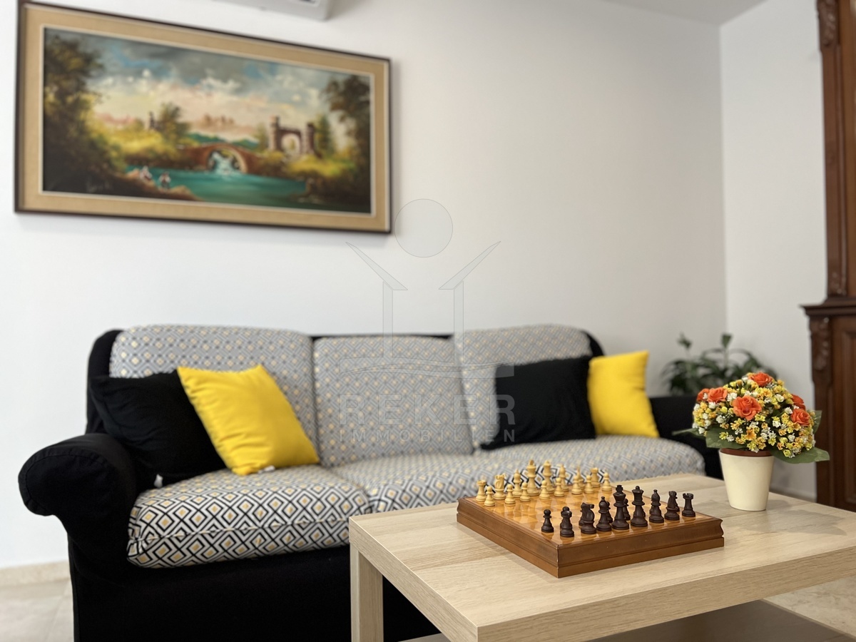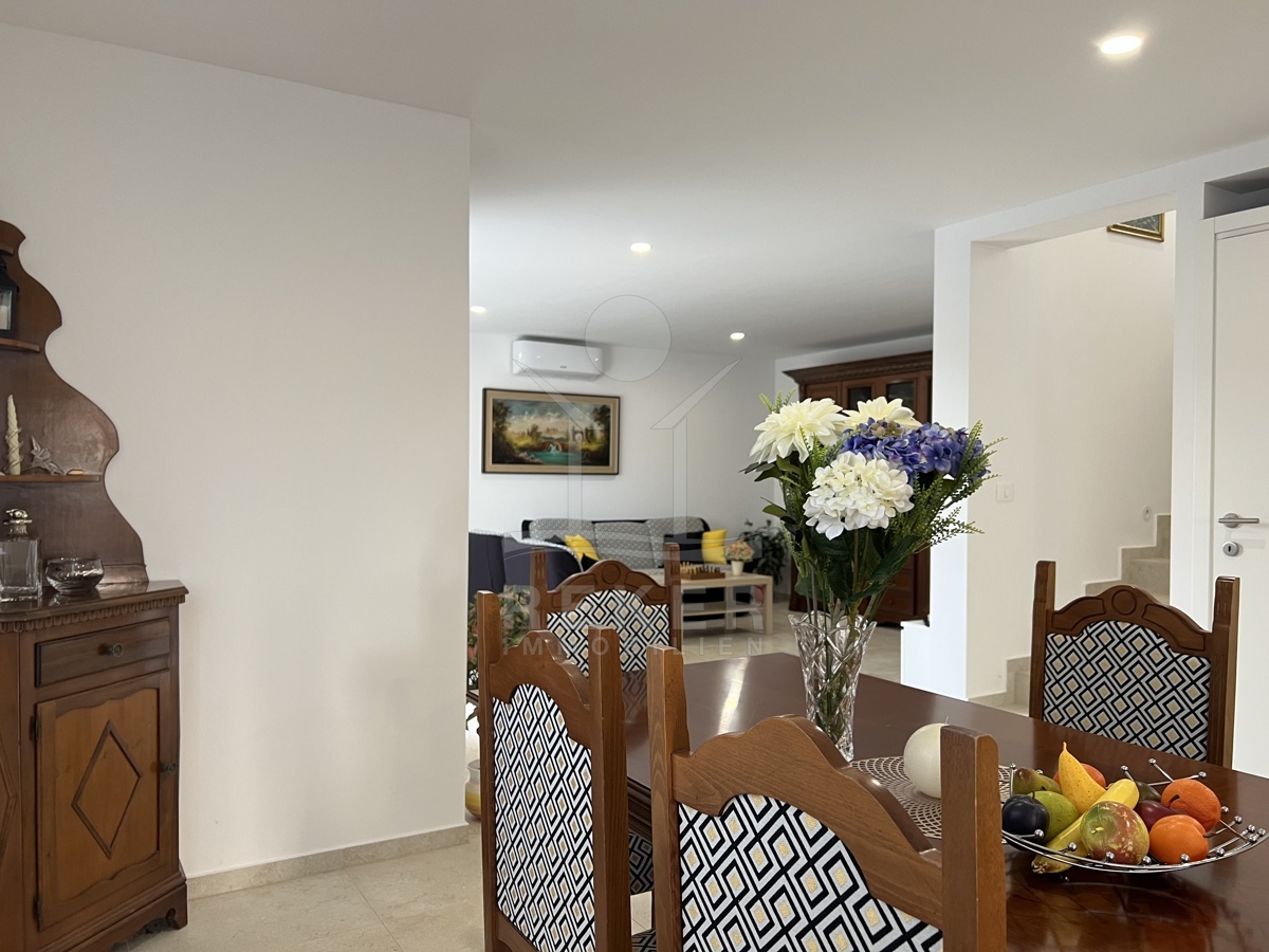 Das Haus verfügt über eine Klimaanlage und Fußbodenheizung und wird möbliert verkauft. Im Erdgeschoss finden Sie einen einladenden Eingangsbereich, eine moderne Küche, ein gemütliches Wohnzimmer mit Essbereich, ein Badezimmer, ein Gäste-WC und einen praktischen Abstellraum.