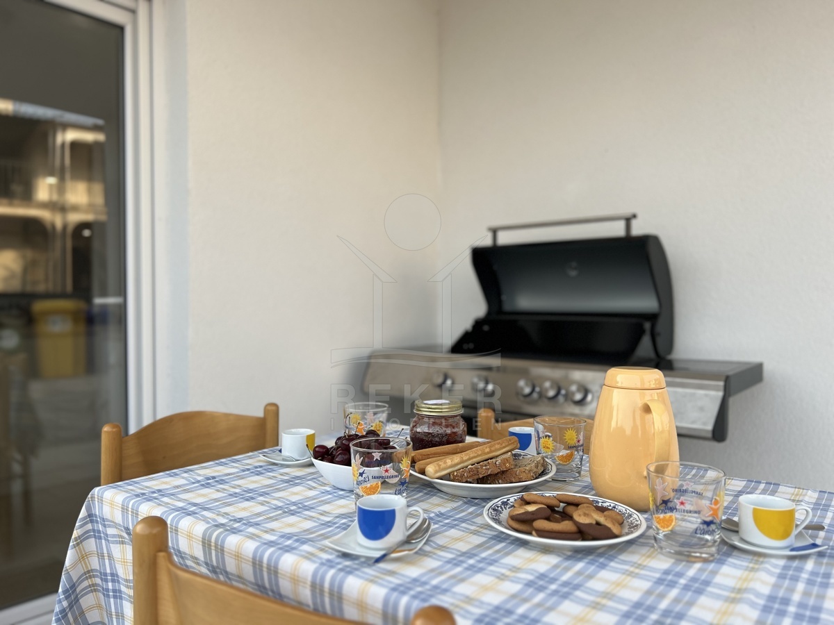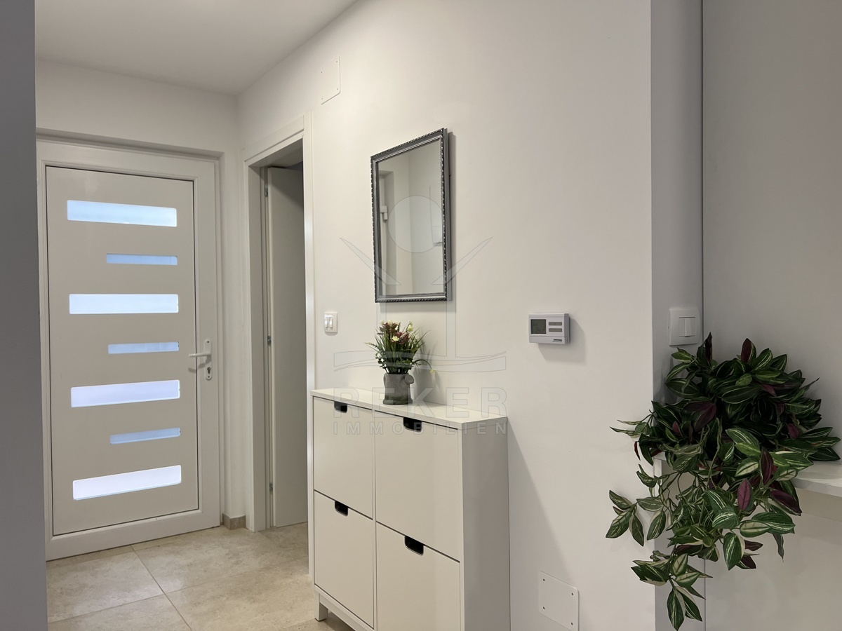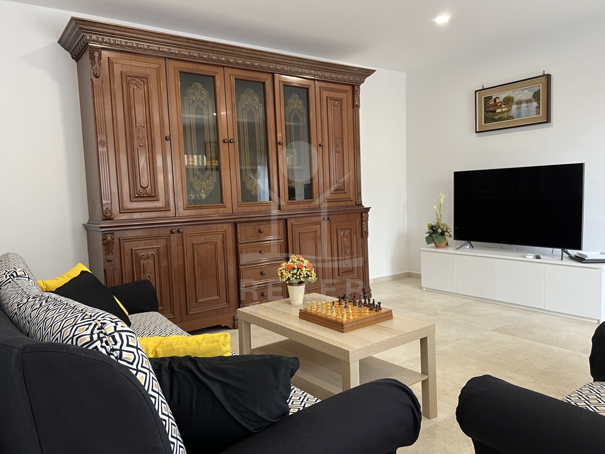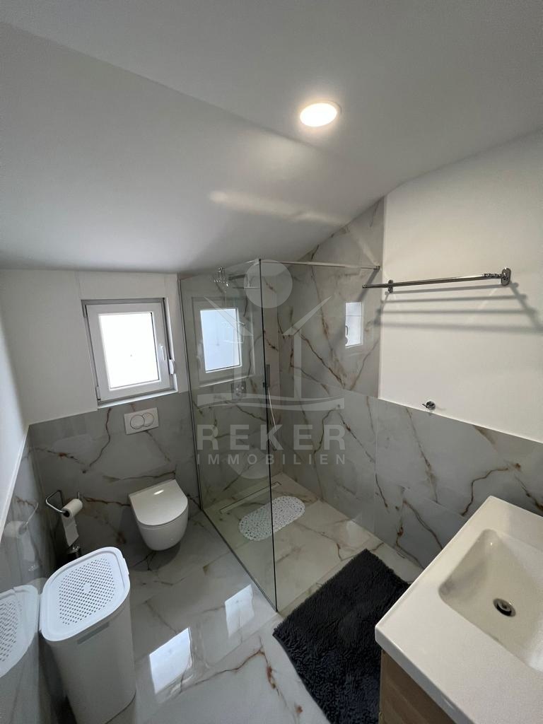 Das Haus verfügt über eine Klimaanlage und Fußbodenheizung und wird möbliert verkauft. Im Erdgeschoss finden Sie einen einladenden Eingangsbereich, eine moderne Küche, ein gemütliches Wohnzimmer mit Essbereich, ein Badezimmer, ein Gäste-WC und einen praktischen Abstellraum.
