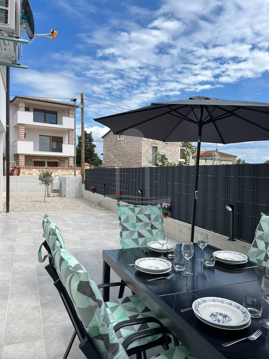 Die Villa befindet sich an einem attraktiven Ort in der Nähe von Novigrad und bietet eine idyllische Lage für erholsame Tage. Nur 3 km entfernt können Sie das Adriatische Meer genießen und sich an den Stränden entspannen. Das Zentrum von Novigrad, mit allen notwendigen Einrichtungen wie Einkaufsmöglichkeiten, Restaurants und Cafés, ist in nur wenigen Autominuten in etwa 6 km erreichbar. Die Umgebung ist von malerischen Landschaften und Natur umgeben, die zu Aktivitäten im Freien einladen. Ob Sie die nahegelegenen Weinberge erkunden, Fahrradtouren unternehmen oder einfach nur die Ruhe und Schönheit der Umgebung genießen möchten, hier sind Sie richtig.