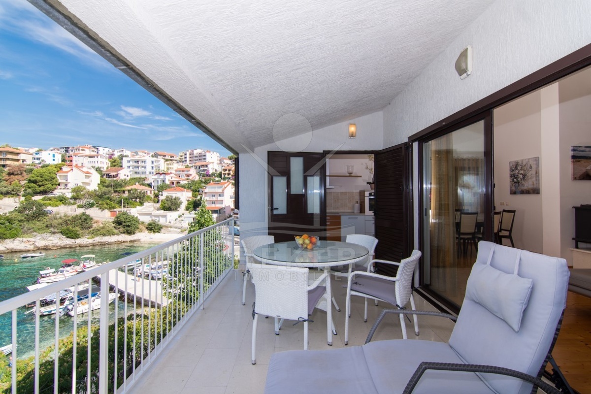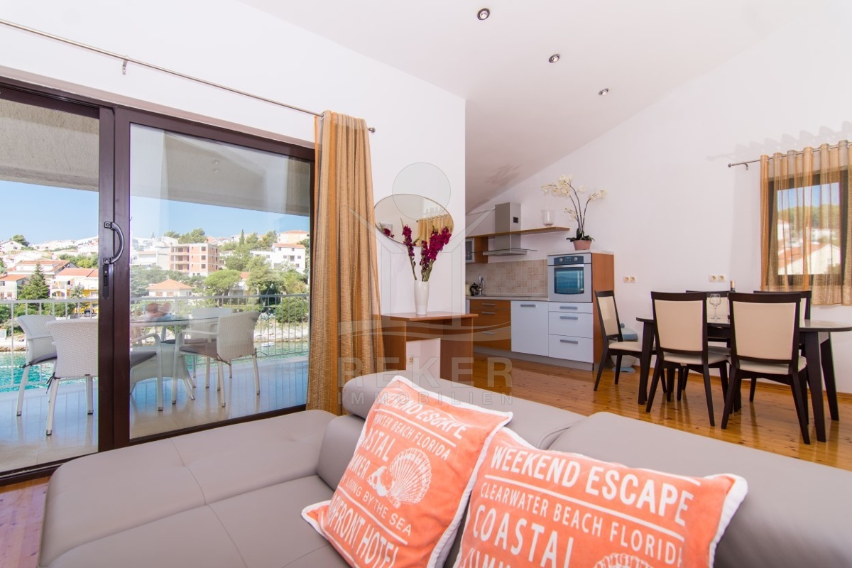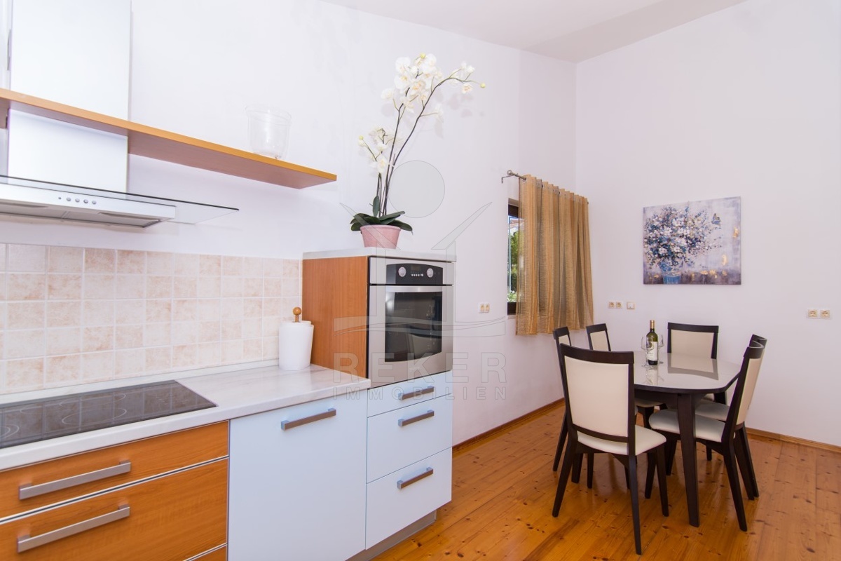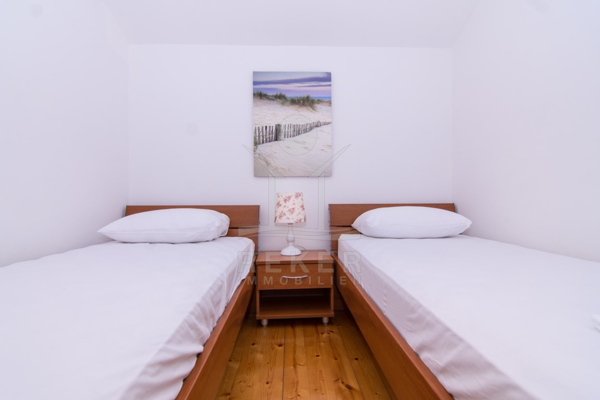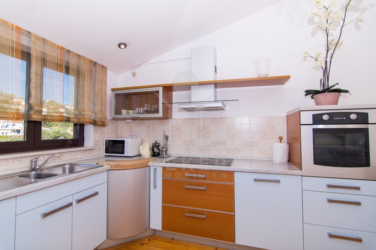In der Bucht von Mavarstica finden Sie Ihr neues Apartmenthaus, das Sie mit einer sanften Meeresbrise und dem melodischen Rauschen der Wellen verwöhnen wird. Das etwa 653 m² große Grundstück ist umzäunt, um Ihre Privatsphäre zu schützen, und beinhaltet Parkplätze für 3 Autos.