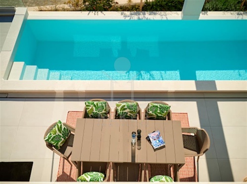 Die Terrasse, die direkt vom Wohnzimmer aus zugänglich ist, sucht ihresgleichen. Mit einem Essbereich, Loungemöbeln und einem beeindruckenden Infinity-Pool mit eingebautem Gegenstromschwimmer bietet die Terrasse den perfekten Ort, um das mediterrane Klima zu genießen und den Rundblick zu bewundern. Mit ausreichend Parkplätzen bietet diese Neubauvilla alle Annehmlichkeiten, die man sich wünschen kann. Lassen Sie sich von diesem luxuriösen Wohnraum verzaubern und erleben Sie das ultimative Wohngefühl.