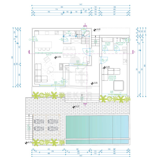 Der Außenbereich dieser modernen Immobilie wird zum perfekten Rückzugsort. Eine großzügige Terrasse mit einem einladenden Essbereich und Grillmöglichkeiten lädt zum gemütlichen Beisammensein im Freien ein. Das Sonnendeck rund um den großen Infinity-Pool von 32 m² bietet großzügigen Platz zum Entspannen und Genießen der warmen Sonnenstrahlen. Diese exquisite Villa kombiniert modernen Luxus mit einem entspannten Lifestyle - ein Traum für jeden, der das Leben im Freien liebt.