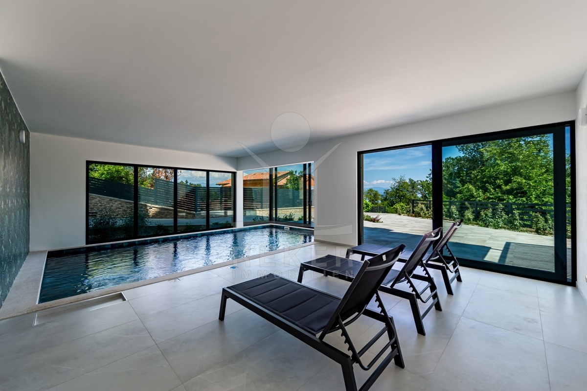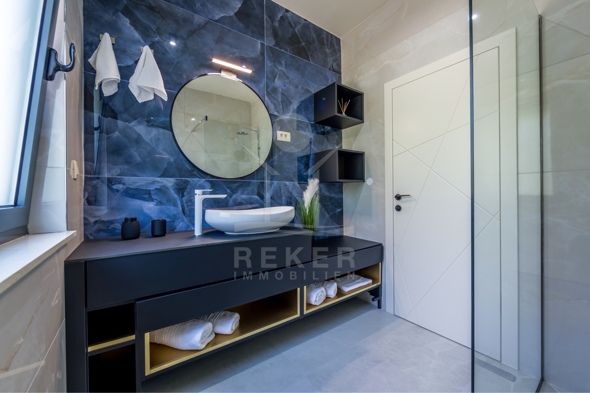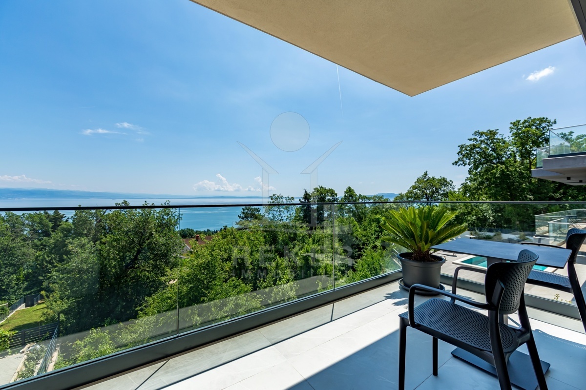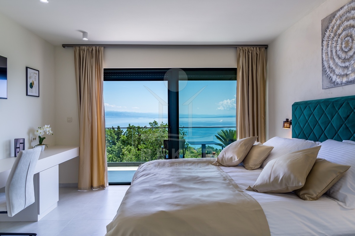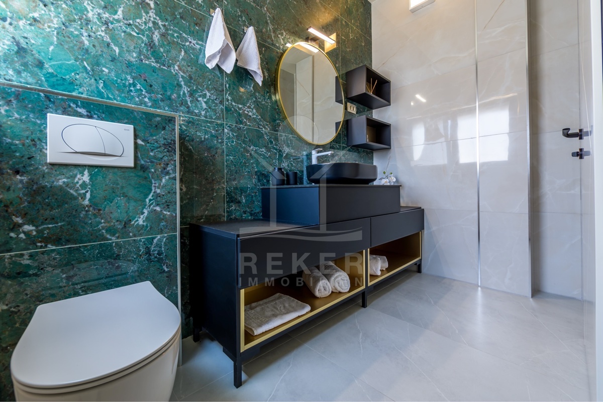 Grüne Hügel, absolute Ruhe und ein freier Blick auf die Kvarner Bucht … nur wenige Minuten oberhalb von Lovran. Diese Villa liegt in einer kleinen Seitenstraße, umgeben von Natur und hochwertiger Nachbarschaft. Die Nähe zu Opatija, die Aussicht auf das Meer und die entspannte Lage machen sie zu einer echten Ausnahmeimmobilie. Im Garten selbst laden ein schattiger Essplatz, die Sommerküche und mediterrane Bepflanzung zum Draußensein ein. Auch praktisch: Die Garage ist direkt ans Haus angebunden.