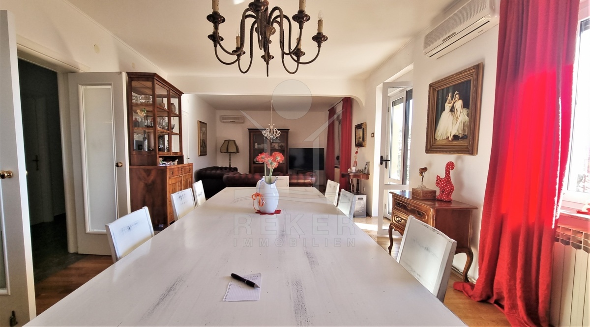 Diese atemberaubende Villa beeindruckt durch einen wunderschönen Garten an der Vorderseite, der als grüne Oase dient und mit seiner sorgfältigen mediterranen Bepflanzung das Flair der Riviera von Opatija verkörpert. Die drei Etagen des frei stehenden Gebäudes umfassen insgesamt 220 m² Wohnfläche und wurden vor 2 Jahren umfassend renoviert. Die Zugangstreppen führen die Bewohner in wenigen Minuten zu Fuß zum glitzernden Meer, was diese Lage besonders begehrenswert macht. Zahlreiche Parkplätze für bis zu drei Autos sorgen für zusätzlichen Komfort.