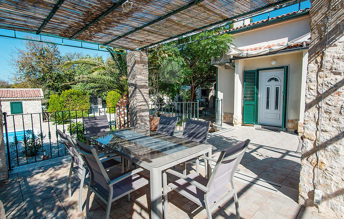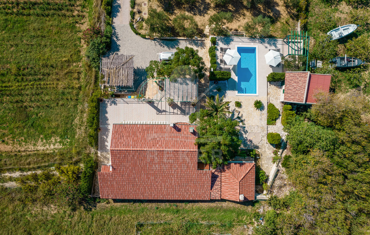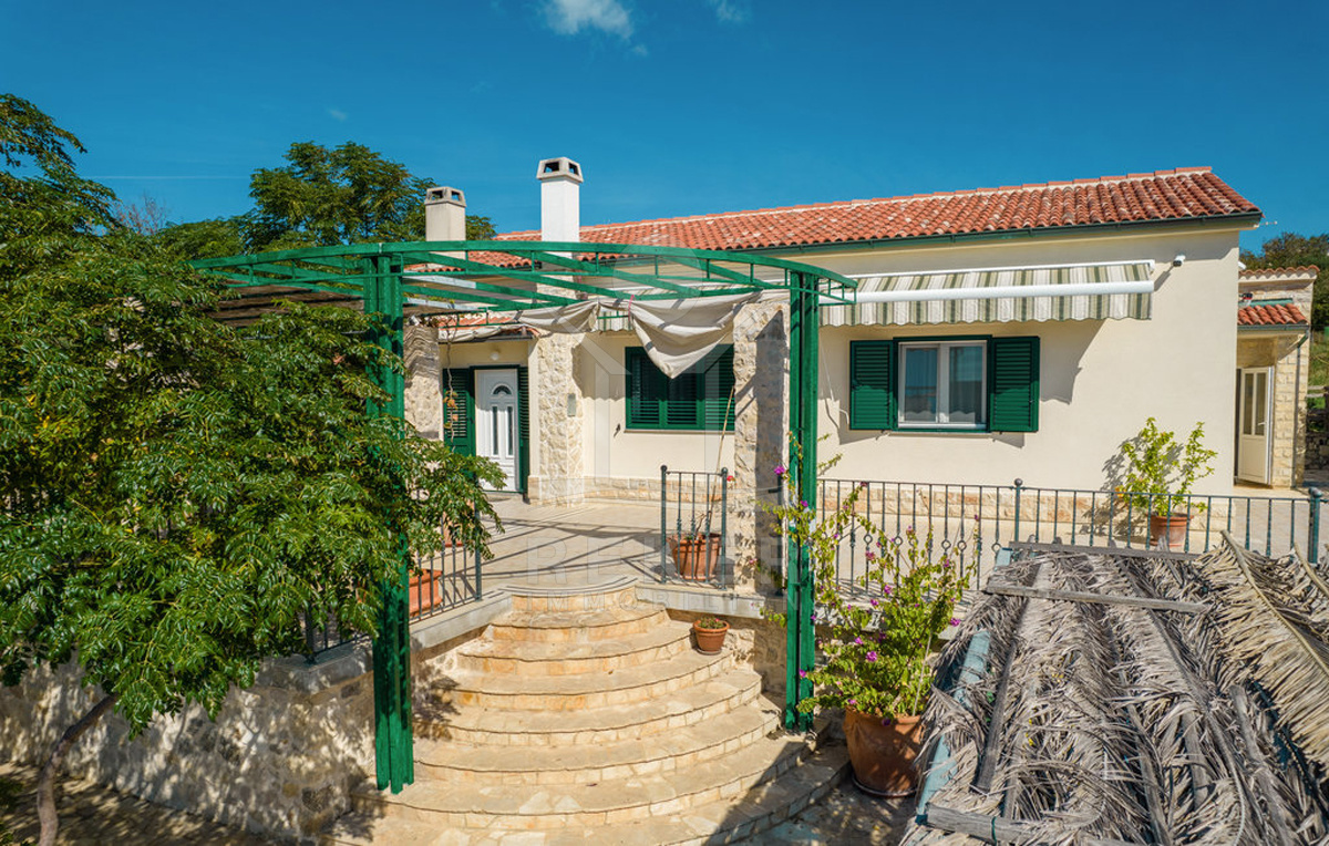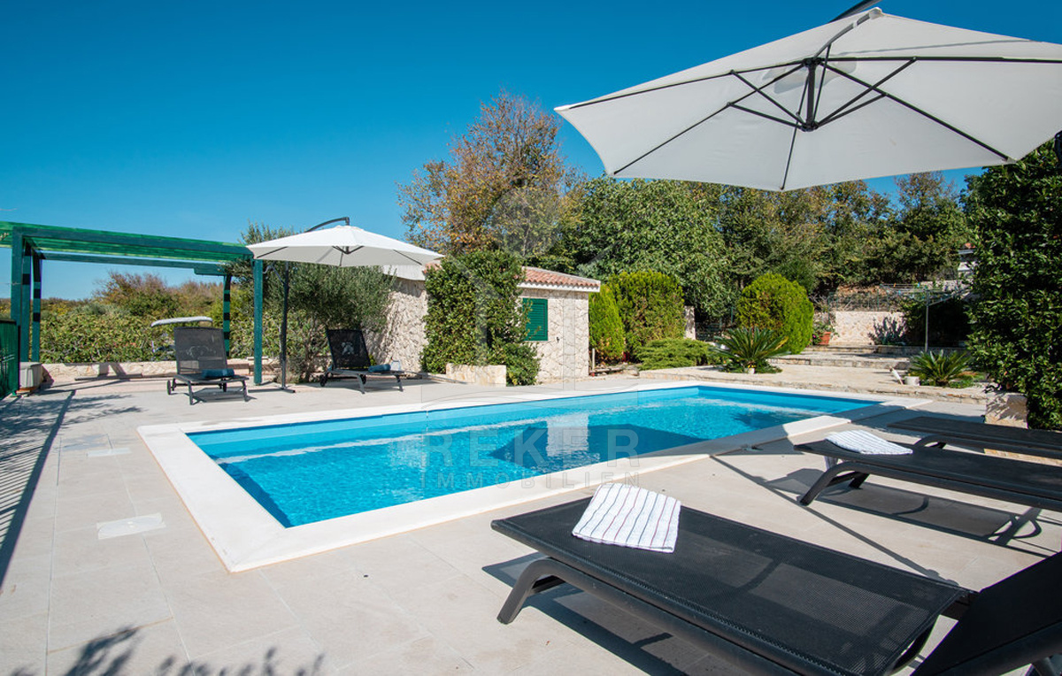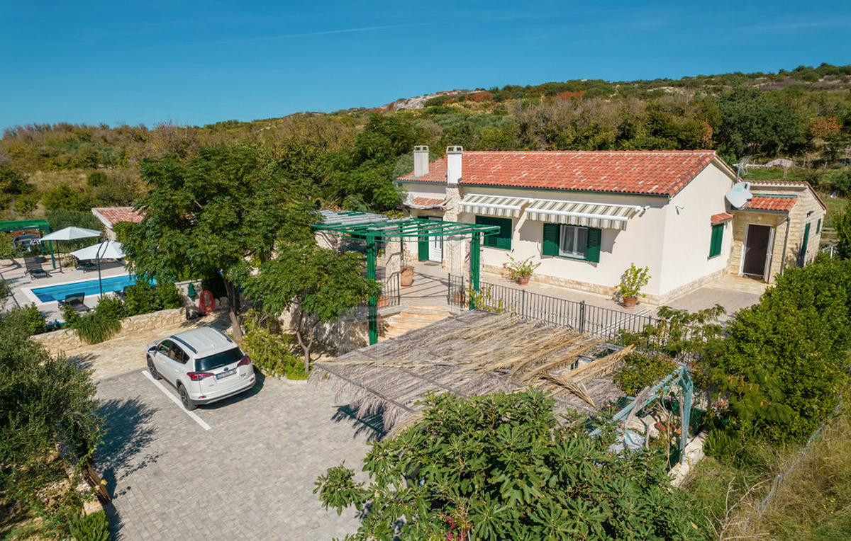Rundherum Natur, kein Nachbar in Sicht. Dieses Haus steht für Ruhe, Rückzug und echtes Inselfeeling. Sie wohnen hier auf der Insel Pag, nur wenige Minuten außerhalb von Novalja – aber weit genug, um ganz bei sich zu sein. Das Grundstück ist über eine schmale Zufahrt erreichbar und liegt völlig allein in der mediterranen Landschaft. Von der Einfahrt bis zum Pool: alles gehört Ihnen. Das Meer funkelt in der Ferne, der erste Strand ist rund 500 Meter entfernt. Mehrere Fahrzeuge parken bequem direkt am Haus.
