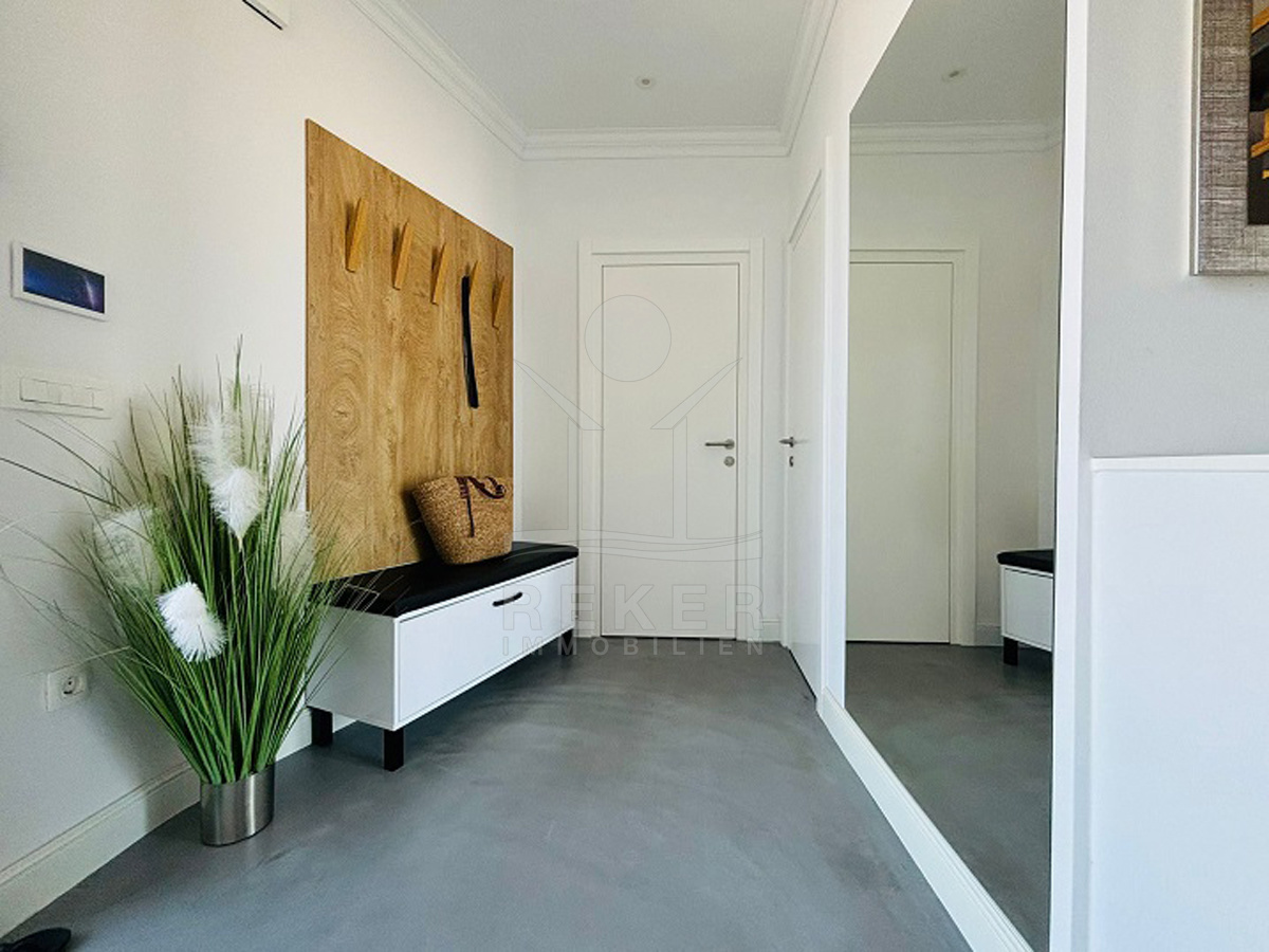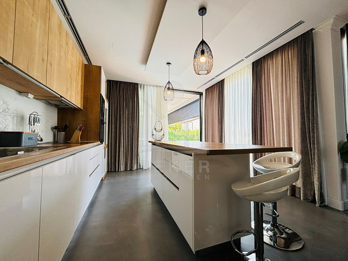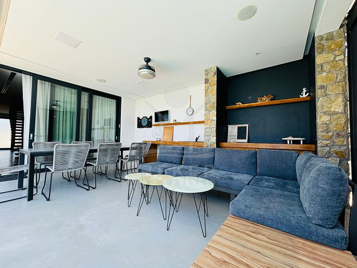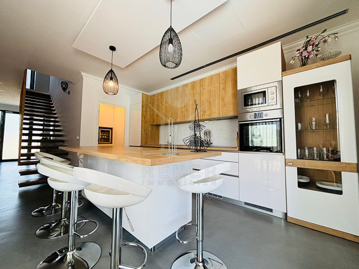 In einem kleinen Dorf bei Lun auf der Insel Pag – eingebettet zwischen alten Olivenhainen – wartet diese moderne Villa auf Sie. Der nächste Strand ist nur zehn Gehminuten entfernt, das Meer gerade mal 400 Meter. Drumherum: Natur, Ruhe, viel Grün. Die Straße endet, das Meer beginnt. Zurückgezogen, aber nicht einsam. Ein Ort, um durchzuatmen. Auf dem eigenen Grundstück parken Sie mehrere Fahrzeuge bequem in der überdachten Garage. Eine Ladestation für E-Autos ist schon installiert.