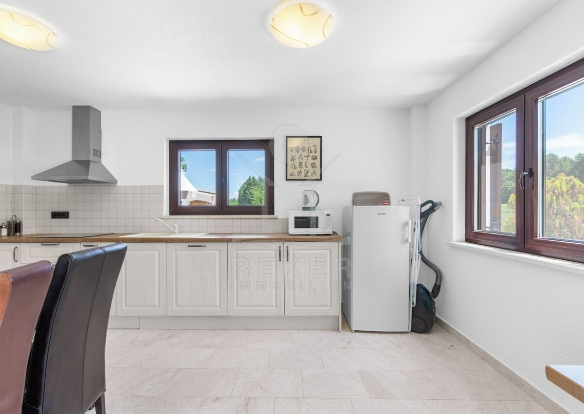 Die luxuriöse Villa befindet sich in einer idyllischen Lage, umgeben von der malerischen Natur von Pican. Mit atemberaubenden Ausblicken auf die umliegende Landschaft bietet diese Immobilie einzigartige Ruhe und Privatsphäre. Die Küste von Opatija ist nur 14 km entfernt, wo Sie feine Sandstrände, erstklassige Restaurants und pulsierendes Nachtleben finden. Die beeindruckende Burg Pazin ist nur 9 km entfernt und lädt dazu ein, die reiche Geschichte der Region zu erkunden. Diese exklusive Lage bietet Ihnen die Möglichkeit, das Beste aus beiden Welten zu genießen - die natürliche Schönheit und Ruhe des ländlichen Lebens und die Annehmlichkeiten und Luxus der nahe gelegenen Küste und historischen Sehenswürdigkeiten.