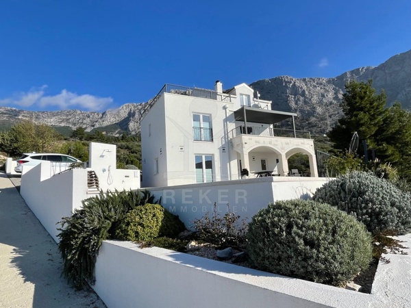 Diese neuwertige Luxusvilla befindet sich in ruhiger Wohnlage oberhalb von Podgora in der Region Dalmatien-Split. Die erhöhte Position eröffnet Ihnen einen weiten Panoramablick über den Ort, die Adria mit vorgelagerten Inseln sowie auf das markante Biokovo-Gebirge. Meer und Ortsmitte erreichen Sie jeweils nach etwa 1 km. Die Zufahrt erfolgt vollständig über asphaltierte Straßen direkt bis zum Haus. Makarska mit Einkaufsmöglichkeiten wie Kaufland, Lidl und Plodine ist in rund 10 Autominuten erreichbar.