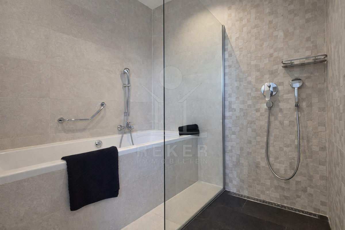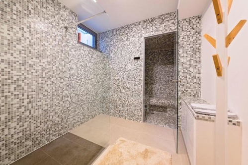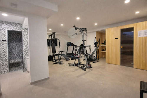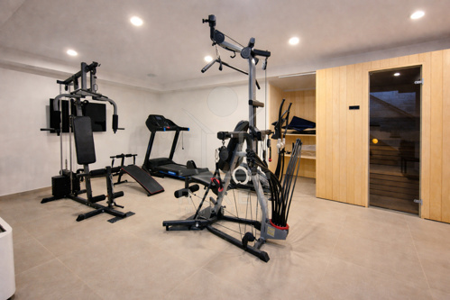 Im Untergeschoss erwartet Sie ein Wellnessbereich mit Fitnessraum, Sauna und Dusche, der diesen Spa Bereich komplettiert. Genießen Sie ein Leben voller Luxus und Erholung!