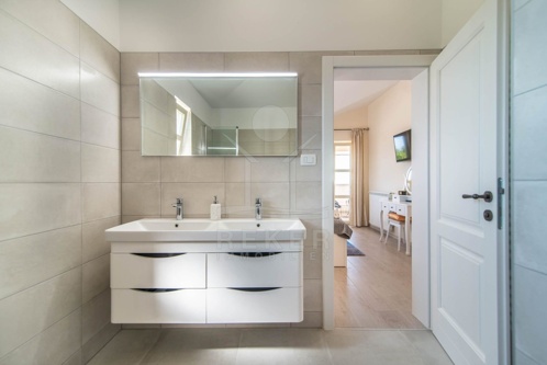 Das 560 m² große Grundstück ist mit einem Zaun, teilweise Mauer und automatischem Tor ausgestattet. Die gepflegten Rasenflächen mit automatischem Bewässerungssystem und Olivenbäumen verleihen der Außenanlage eine mediterrane Atmosphäre. Das Gebäude selbst, Baujahr 2021, erstreckt sich über 2 Etagen mit einer Wohnfläche von 138 m². Die Außenschreinerei besteht aus PVC mit 3-fach-Verglasung, während die Innenschreinerei aus Massivholz gefertigt ist. Die Heizungsoptionen sind vielfältig: Heizkörper, die über den Holzkamin im Wohnzimmer beheizt werden, sowie die Wahl zwischen Heizöl oder Elektroheizkörpern. So können Sie Ihren individuellen Wärmebedürfnissen nachgehen.