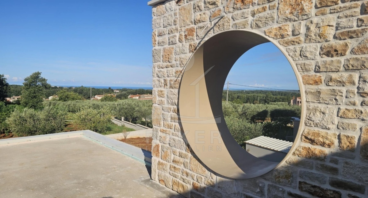 Rund 13 Kilometer von Poreč entfernt liegt diese moderne Villa in Vižinada … einer ruhigen Ecke Istriens, wo kaum Nachbarn stören. Die Umgebung ist angenehm still, die Aussicht spektakulär: Sie blicken unverbaubar aufs Meer und weit ins grüne Hinterland. Die westliche Ausrichtung sorgt dafür, dass Sie jeden Abend das Lichtspiel der untergehenden Sonne genießen können. Hier finden Sie genau die Mischung, die viele suchen und nur wenige finden: Privatsphäre mit Blick.