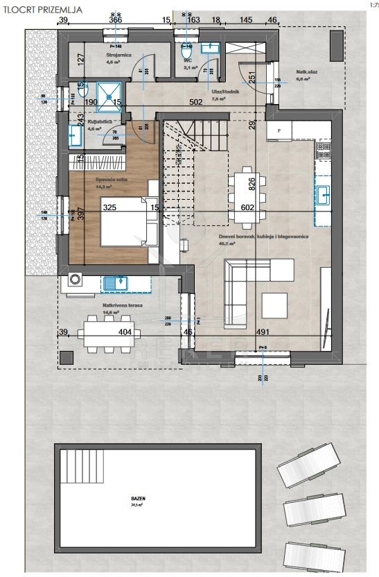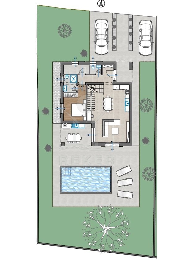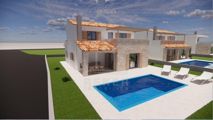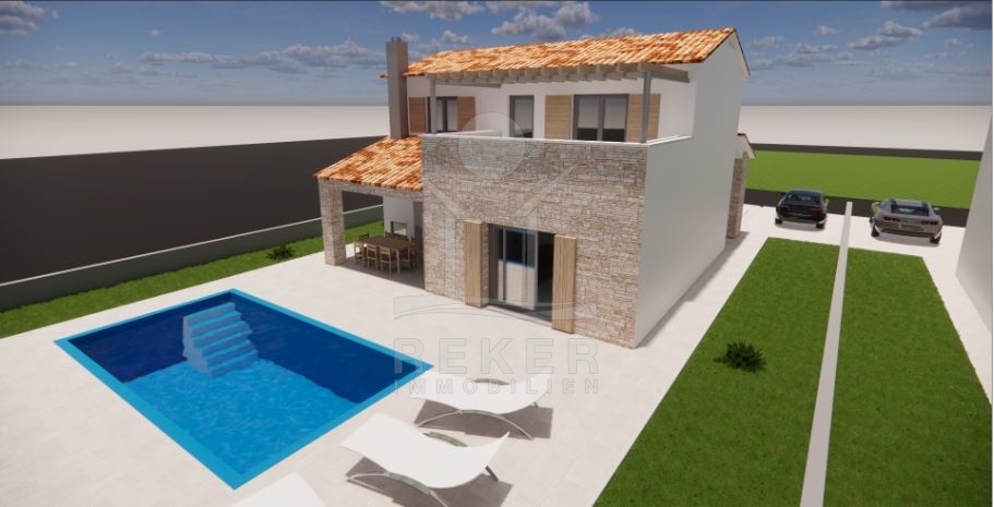 Geräumige 157 m² Wohnfläche verteilen sich auf zwei lichtdurchströmte Stockwerke. Zaubern Sie in der geplanten Außenküche unwiderstehliche Köstlichkeiten, die Sie auf der überdachten Terrasse mit Blick auf den herrlichen Pool genießen können.