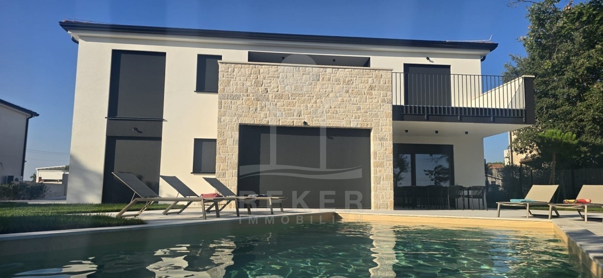 Nur 2 Kilometer von Poreč und rund 11 Kilometer vom Meer entfernt, wartet diese Neubauvilla auf Sie. 168 m² Wohnfläche, verteilt auf zwei Etagen. Dazu ein Grundstück mit 751 m². Zwei Stellplätze direkt am Haus runden das Angebot ab.