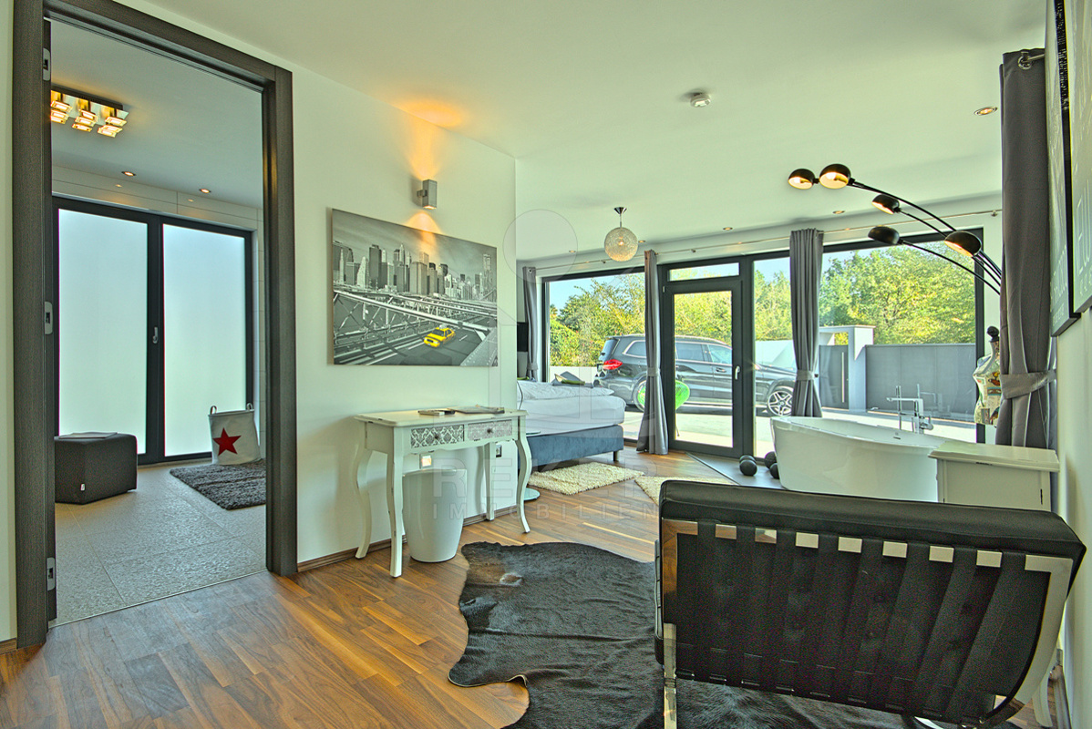 - Heizung: Fußbodenheizung, Klimaanlage, Kamin